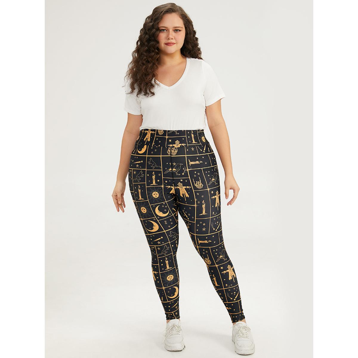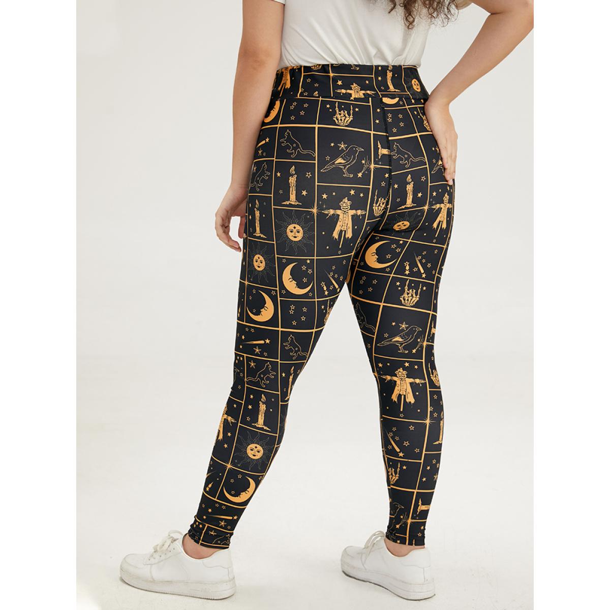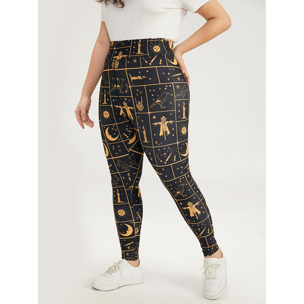 Plus Size Halloween Graphic Skinny Elastic Waist Leggings Women Black Casual High stretch Skinny High Rise Festival-Halloween Leggings BloomChic 12/L