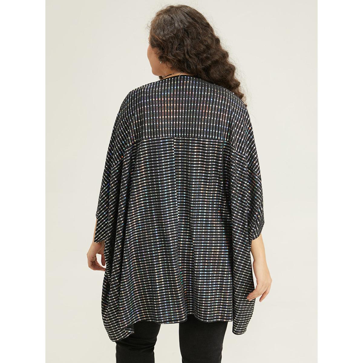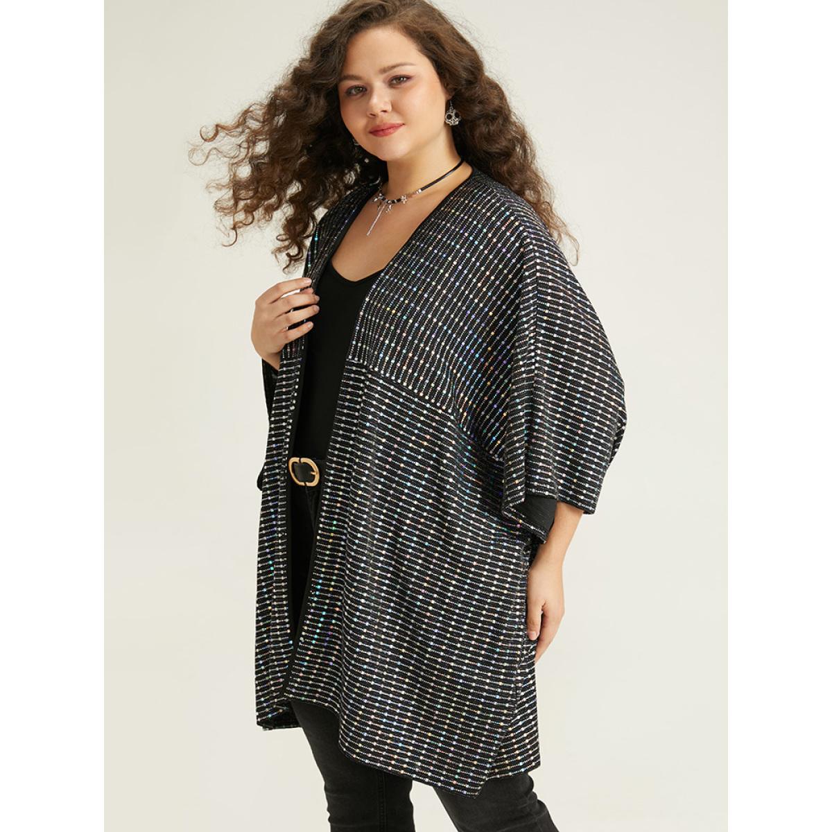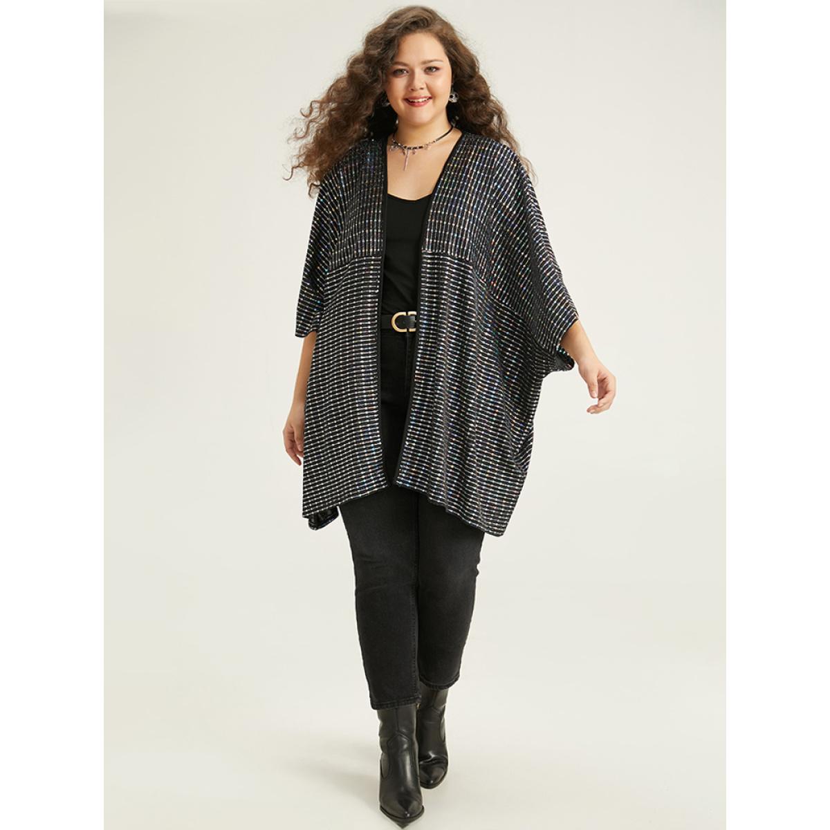 Plus Size Halloween Sequin Drape Open Front Kimono Women Black Casual Rhinestone detailing Loose Dailywear Kimonos BloomChic 26/4X