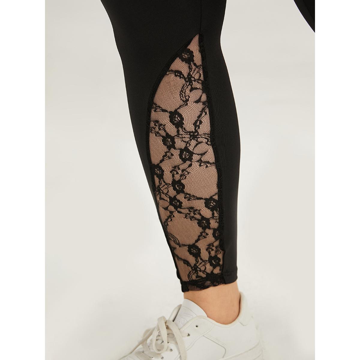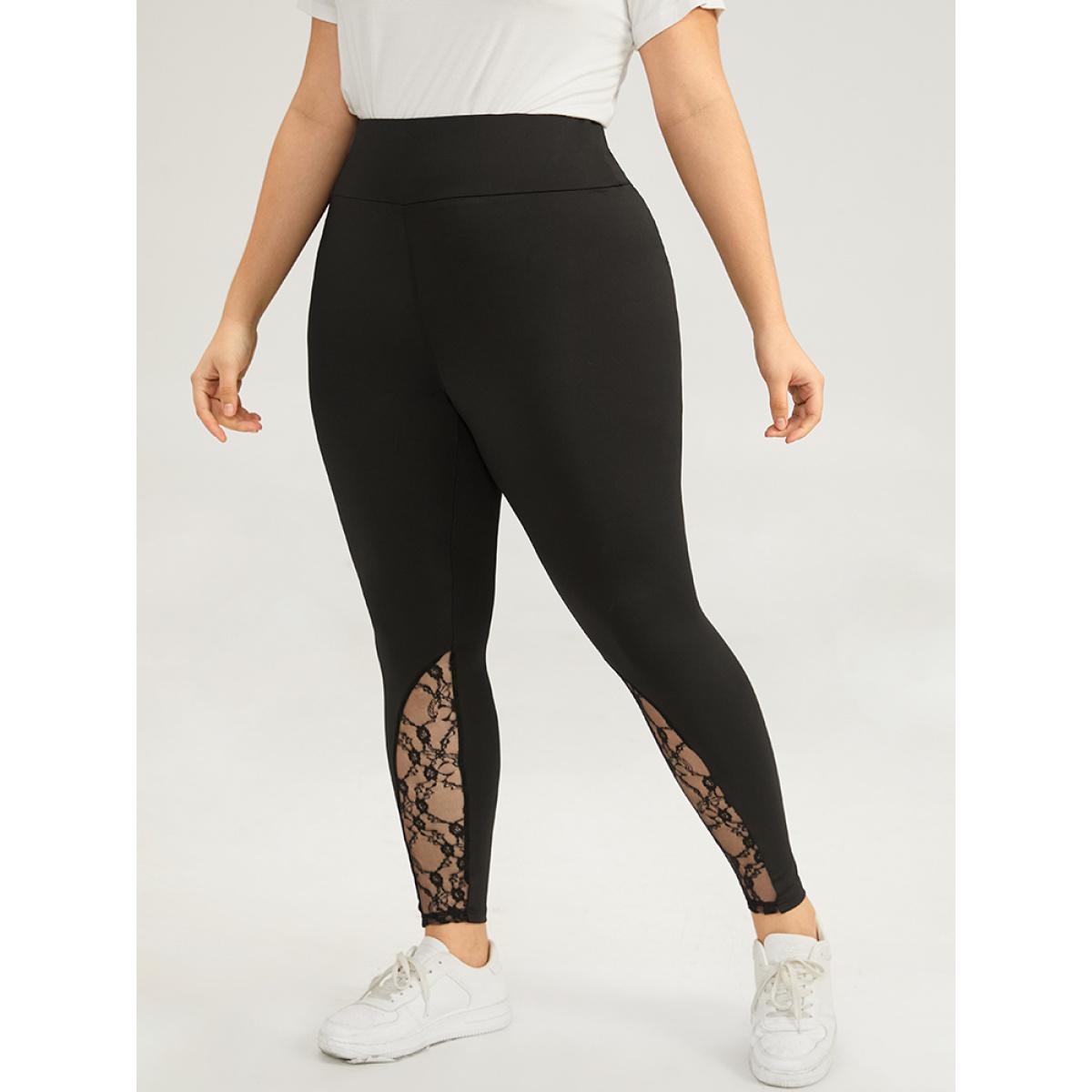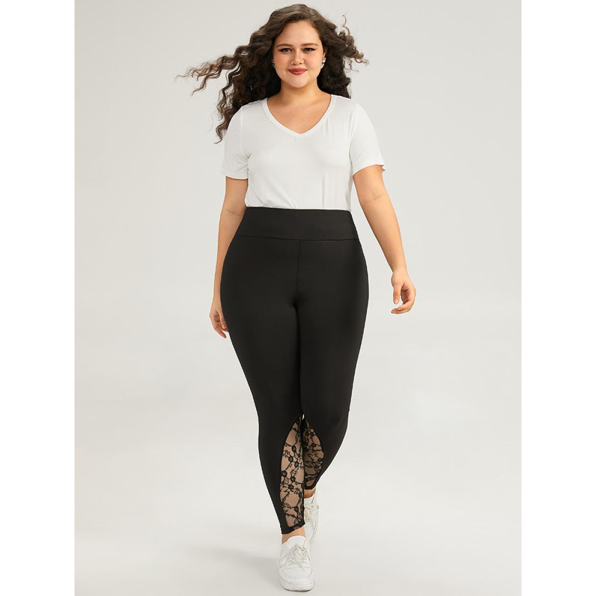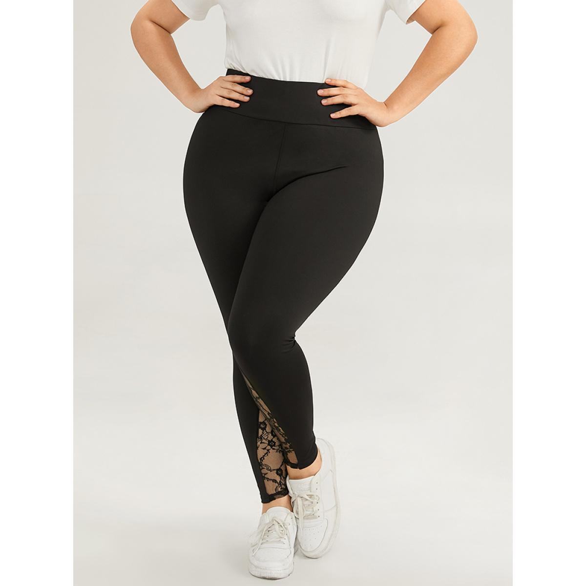 Plus Size Halloween Wideband Waist Lace Panel Leggings Women Black Casual High stretch Skinny High Rise Everyday Leggings BloomChic 10/M