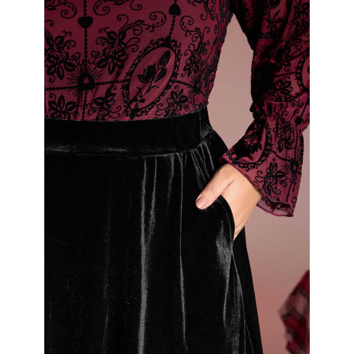 Plus Size Handkerchief Hem Lace Trim Midi Skirt Women Black Romantic Patchwork Bodycon Low stretch Slanted pocket Elegant Skirts BloomChic 18-20/2X