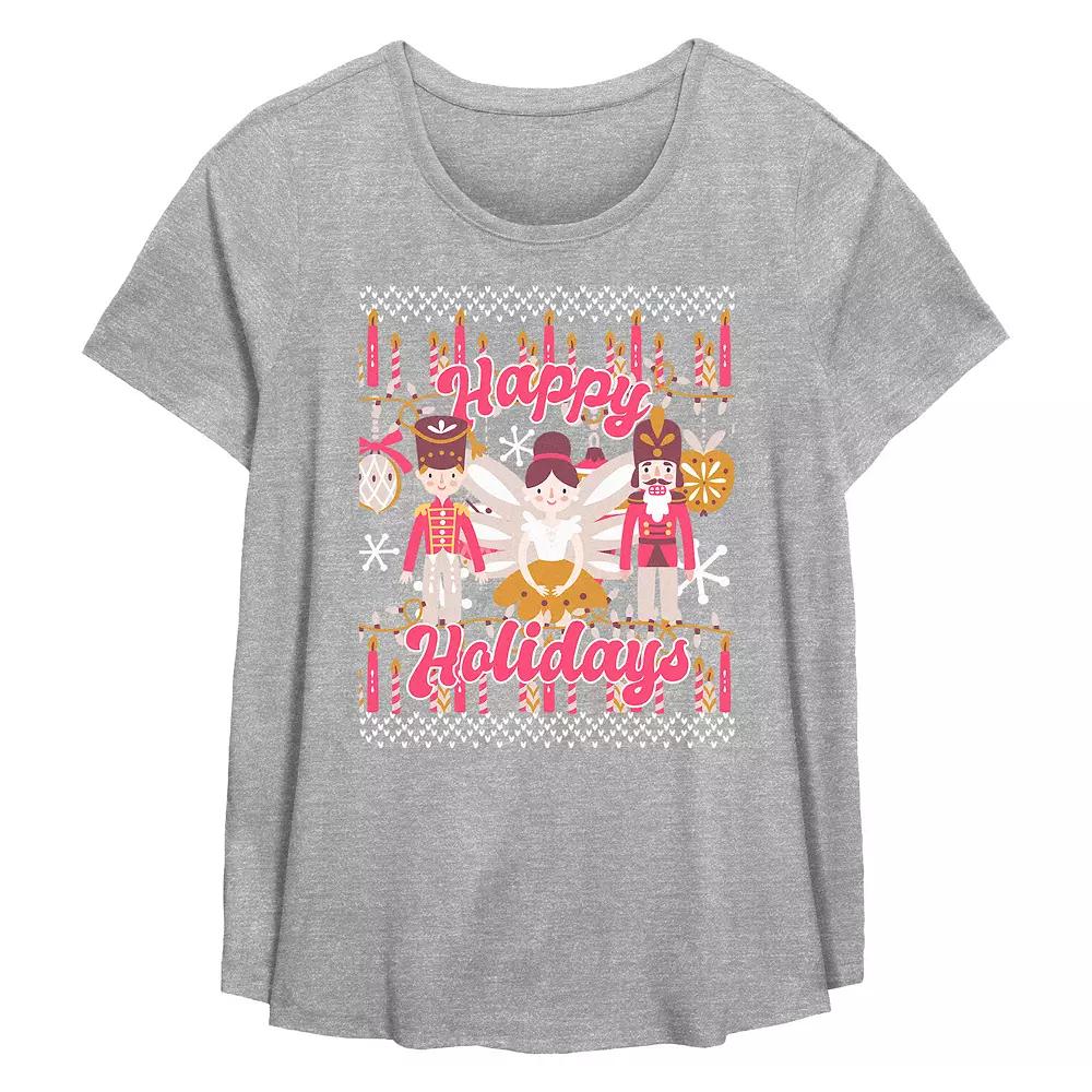 Shell love celebrating the Holiday season with this Plus Size Happy Holidays From The Nutcracker And Ballerina Flowy Graphic Tee. FEATURES Scoopneck Short sleevesFABRIC & CARE Cotton, polyester Machine wash Imported Size: 4X. Color: Heather Gray. Gender: female. Age Group: adult.