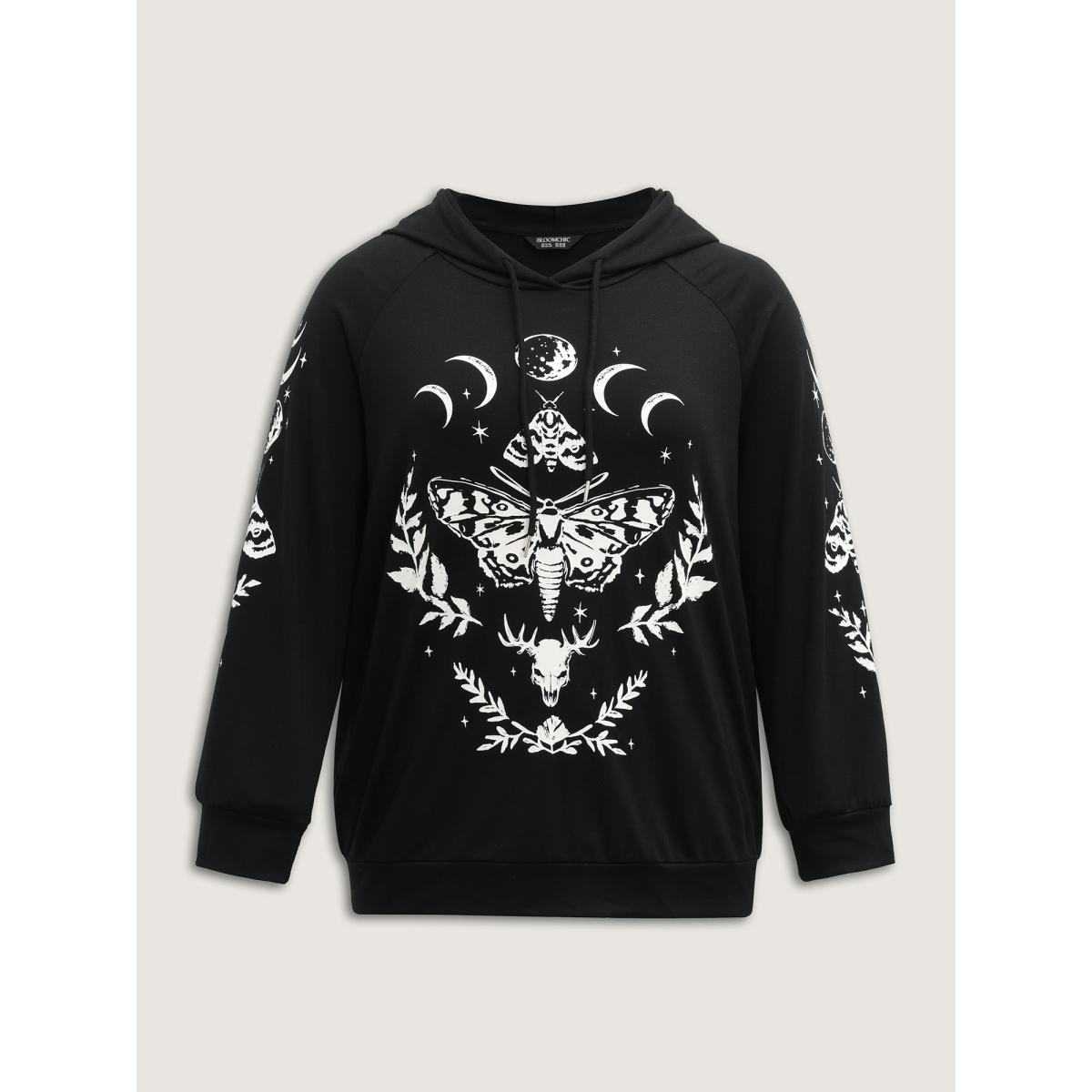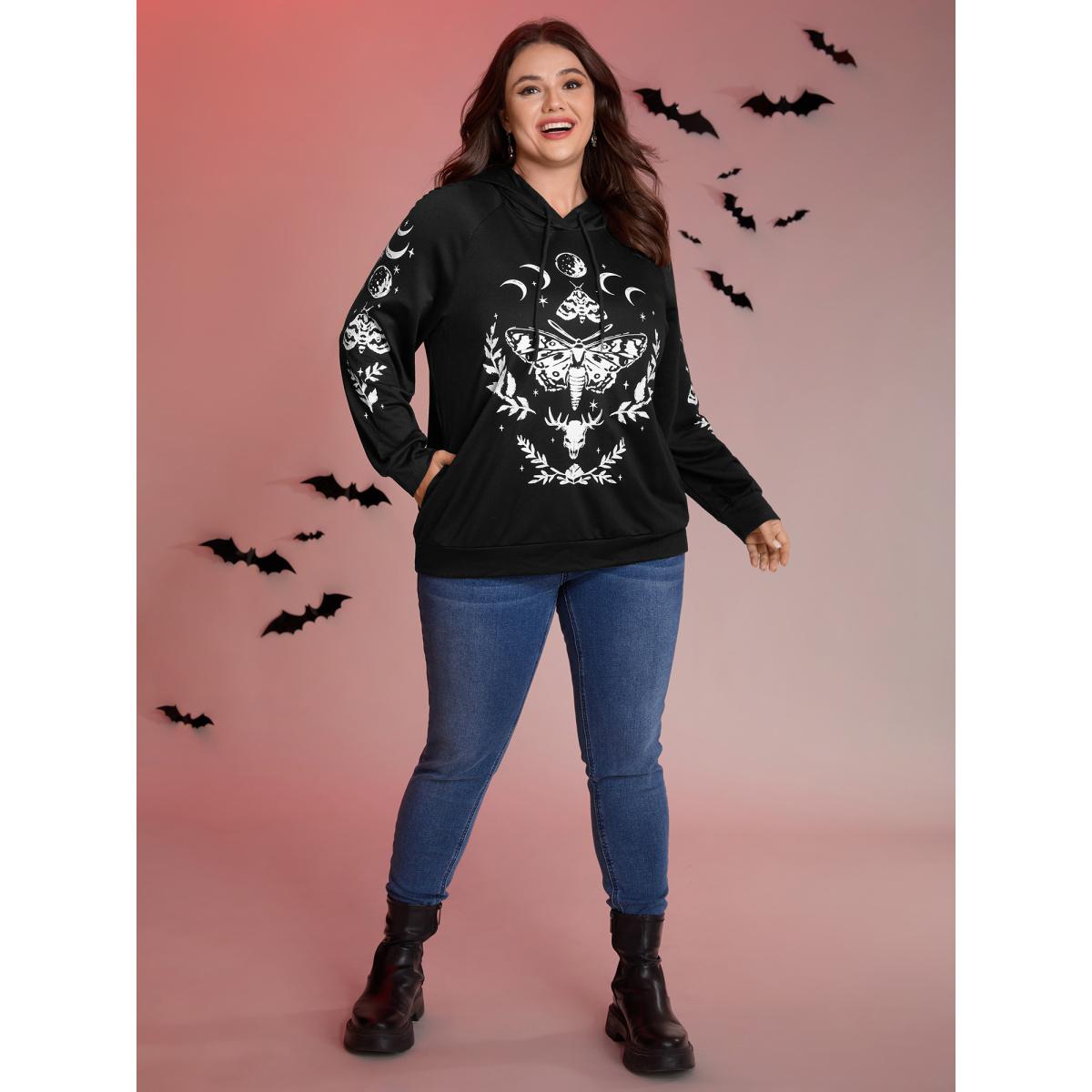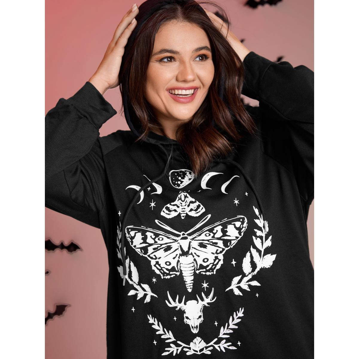 Plus Size Haunted Midnight Motif Solid Hoodie Women Black Leisure Non Hooded Casual Sweatshirts BloomChic 14-16/1X