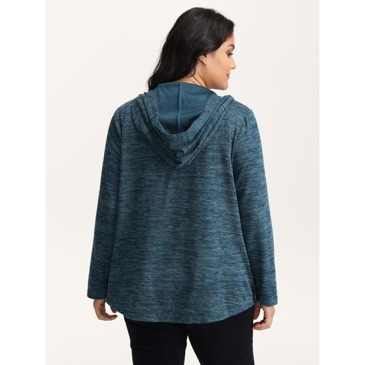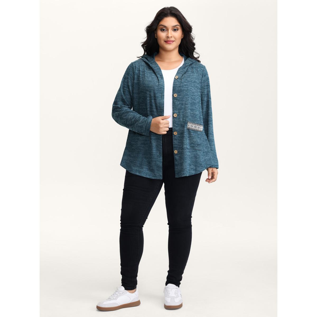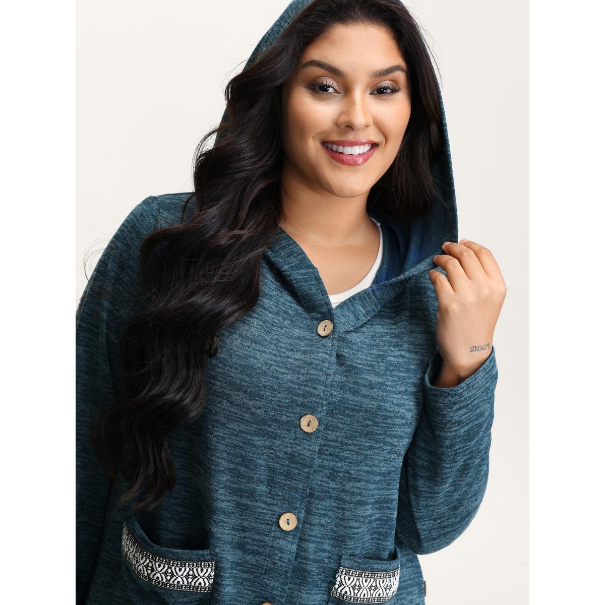 Plus Size Heather Faux Cashmere Boho Stripe Coat Women Cerulean Leisure Woven ribbon&lace trim Ladies Casual Winter Coats BloomChic 26/4X