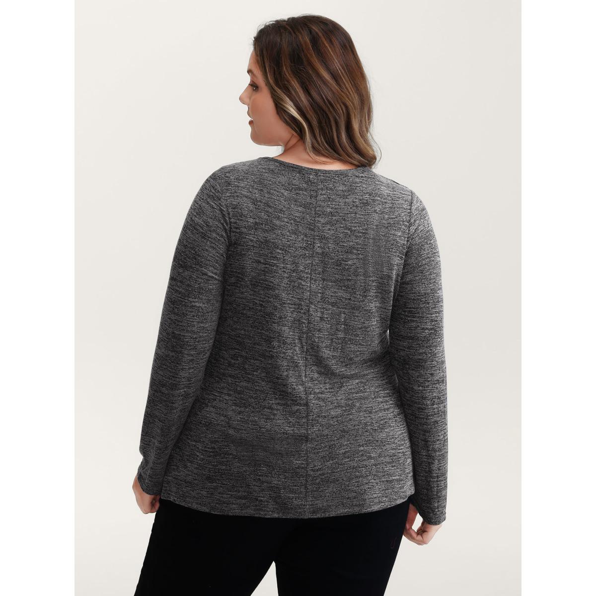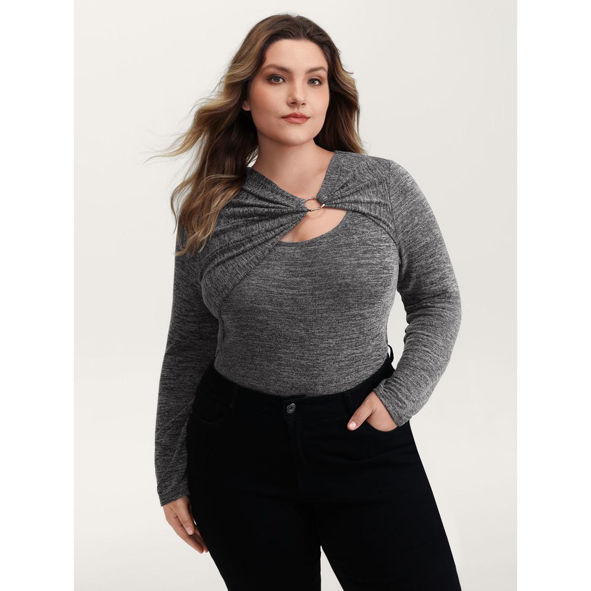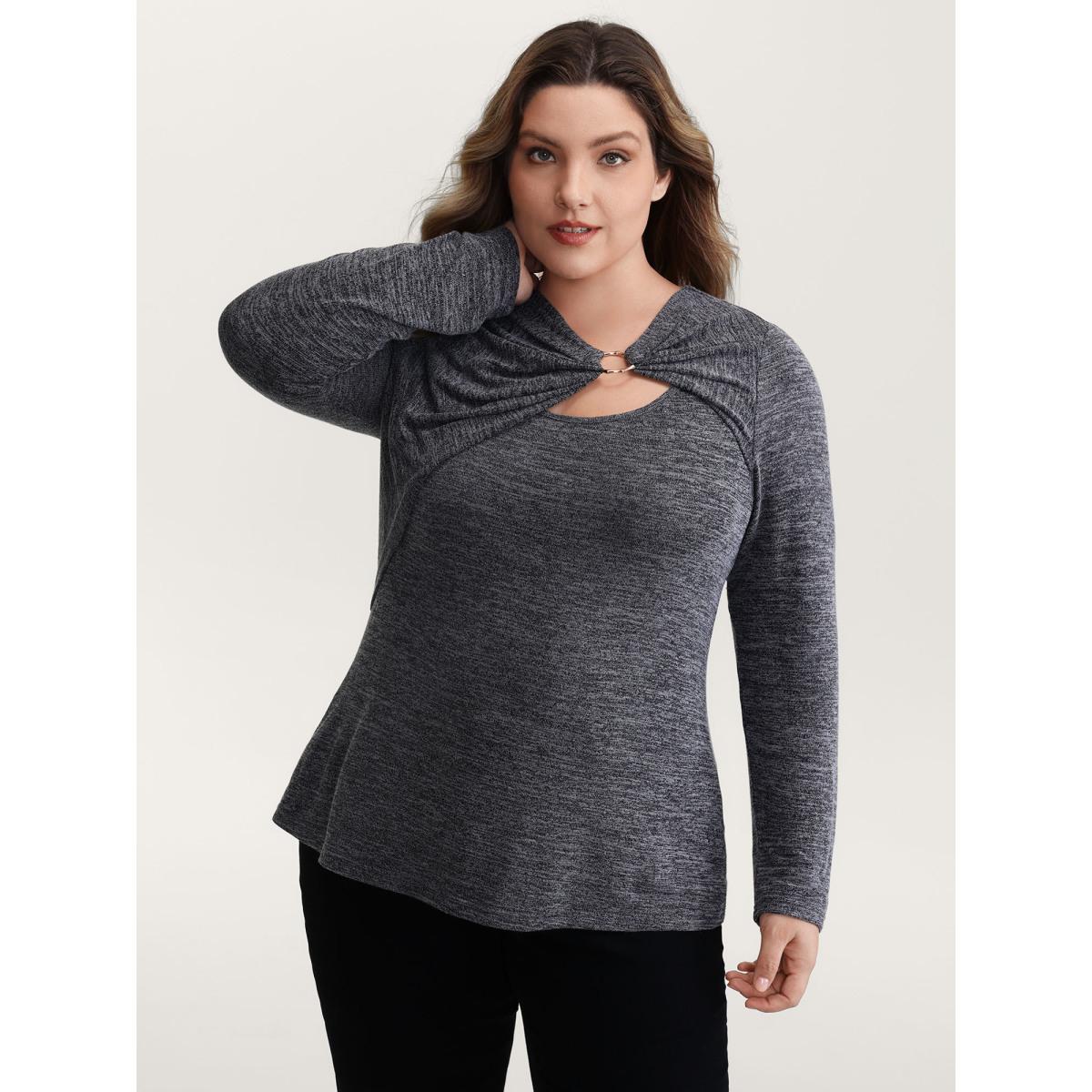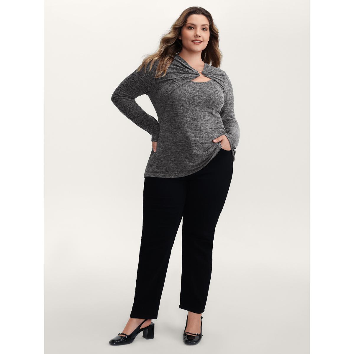 Plus Size Heather Metal Detail Ruched T-Shirt Black Women Leisure Asymmetrical Asymmetrical Neck Casual T-shirts BloomChic 10/M