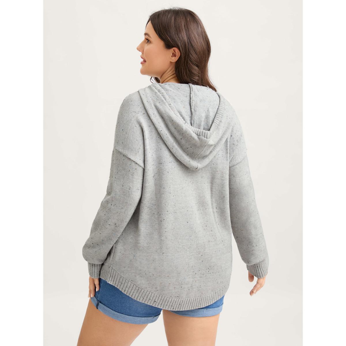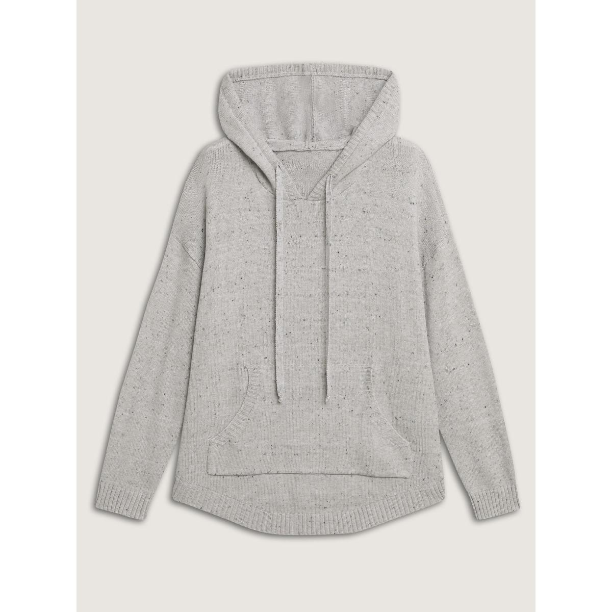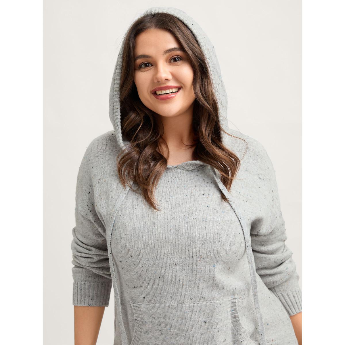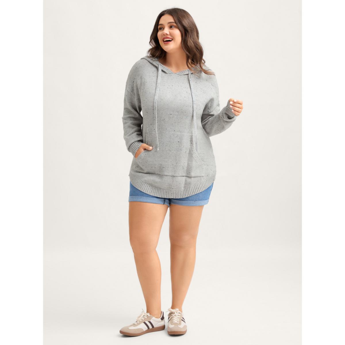 Plus Size Heather Pocket Curvy Hem Pullover LightGray Women Leisure Loose Long Sleeve Hooded Casual Pullovers BloomChic 22-24/3X