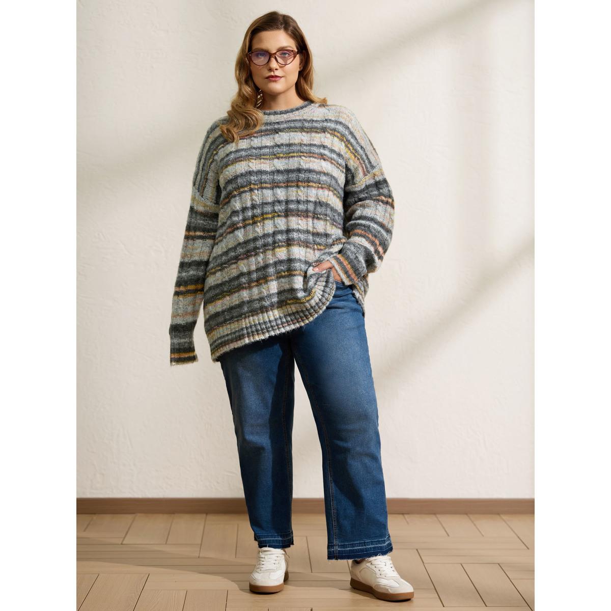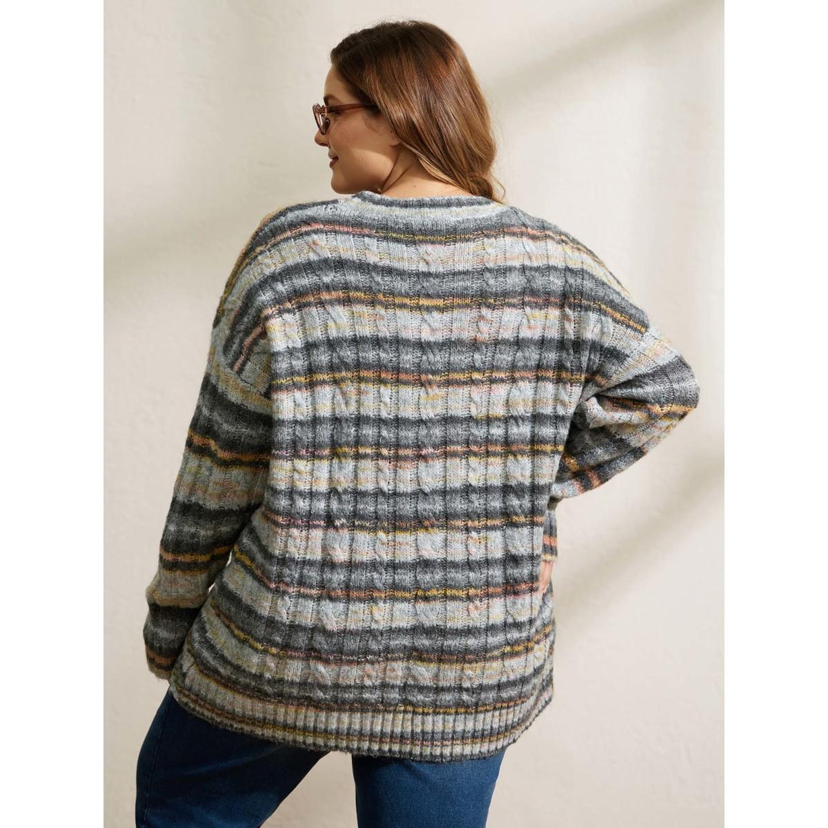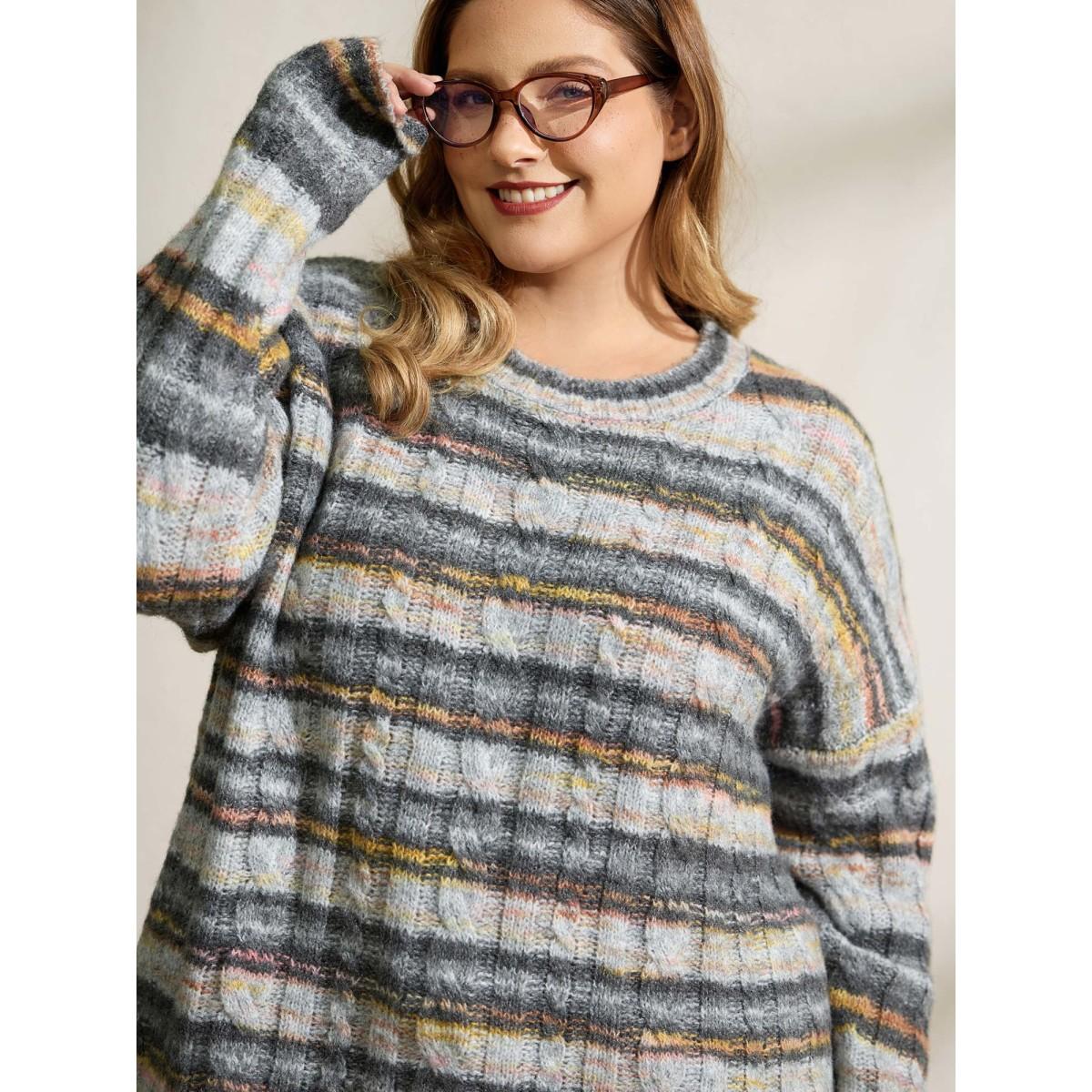 Plus Size Heather Twist Textured Round Neck Pullover DarkGray Women Leisure Loose Long Sleeve Round Neck Casual Pullovers BloomChic 28/5X