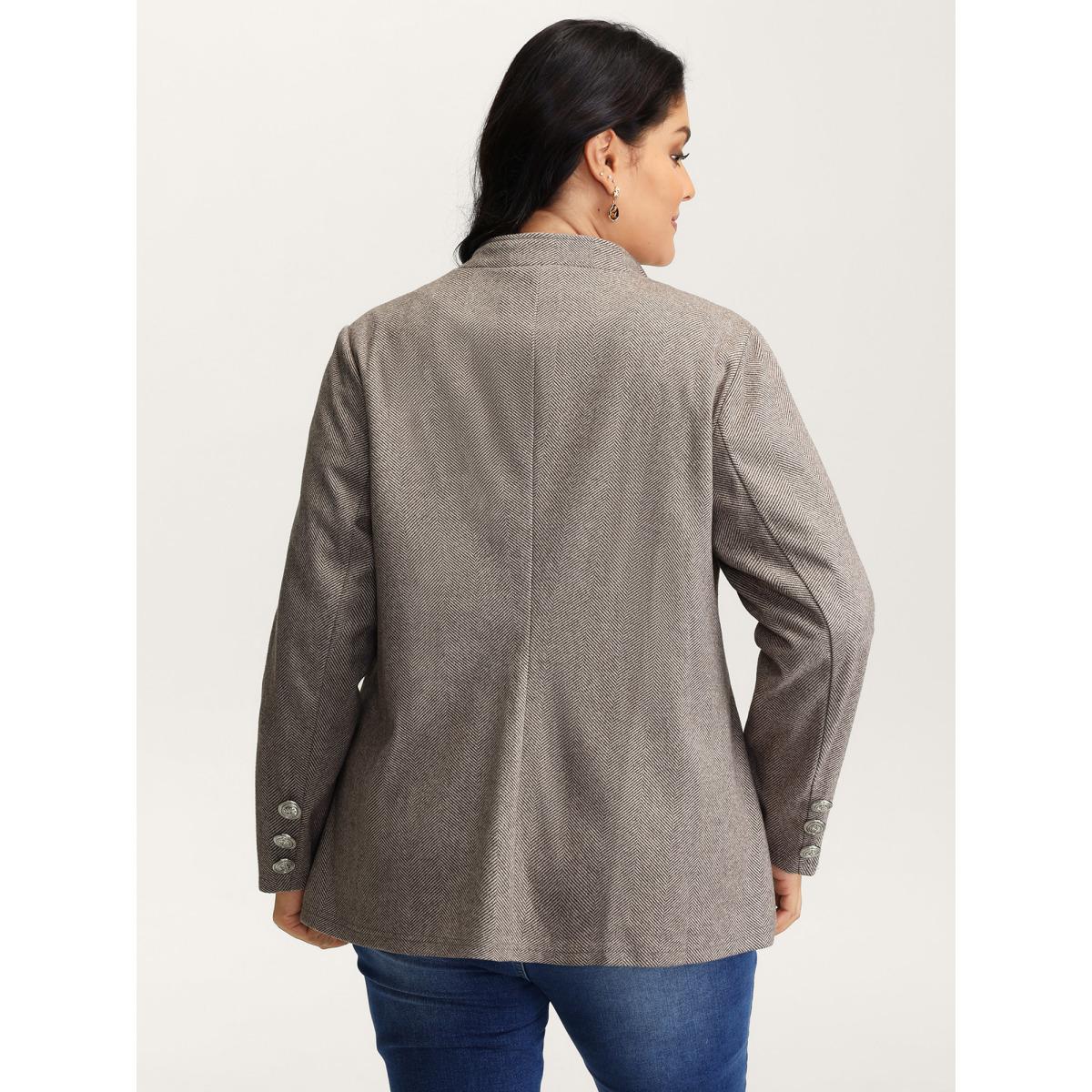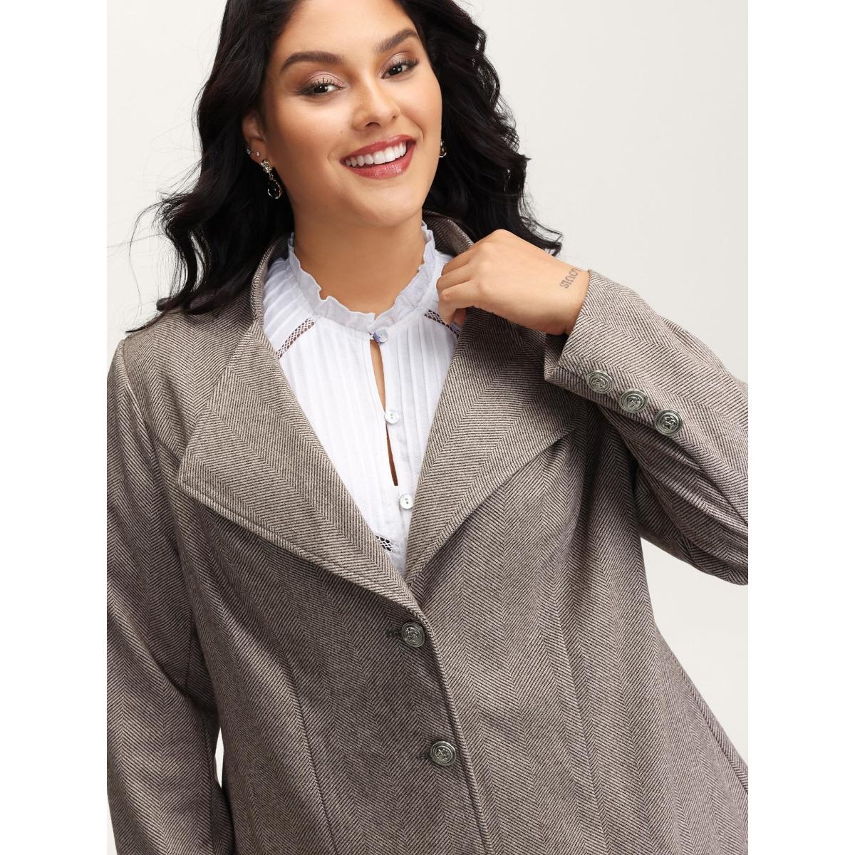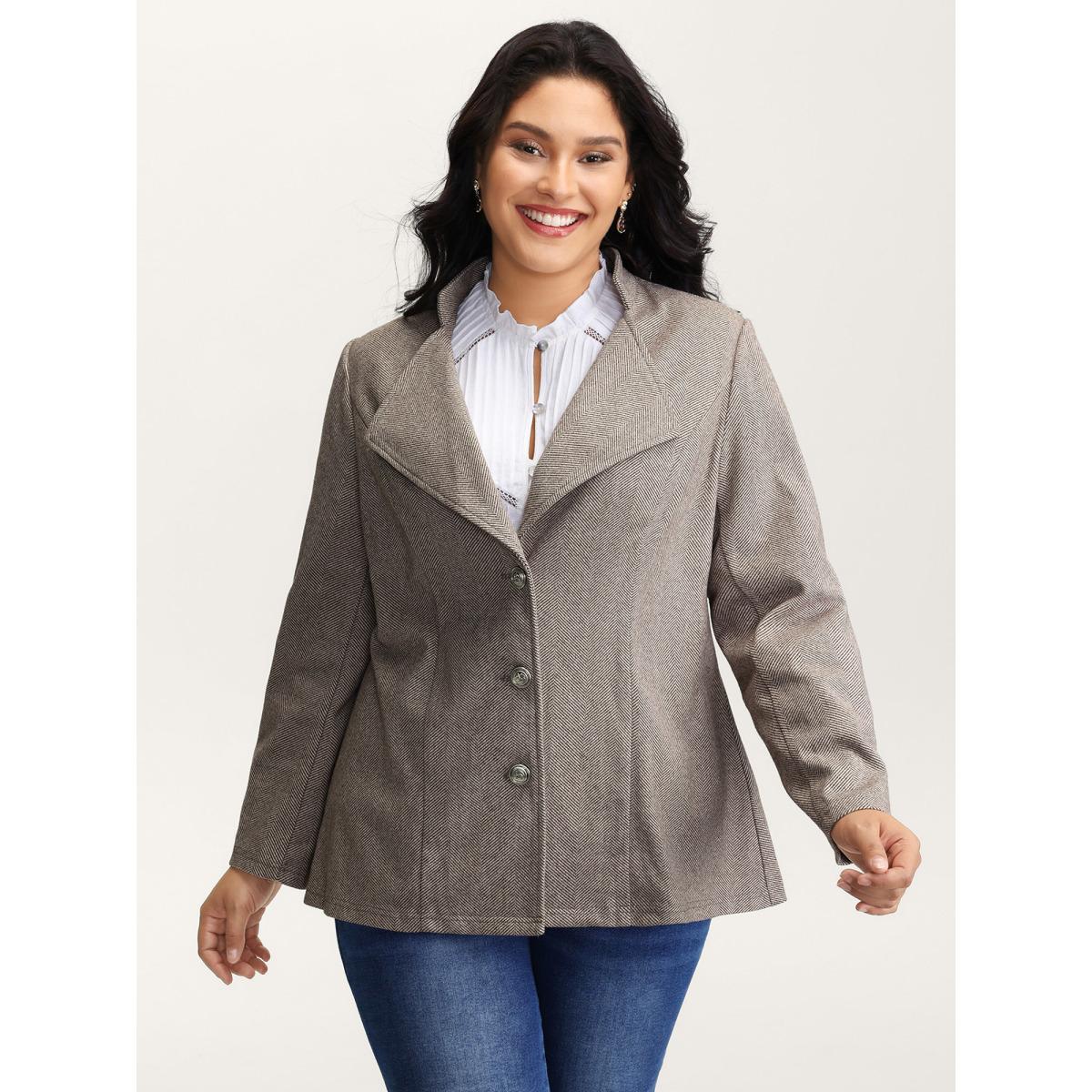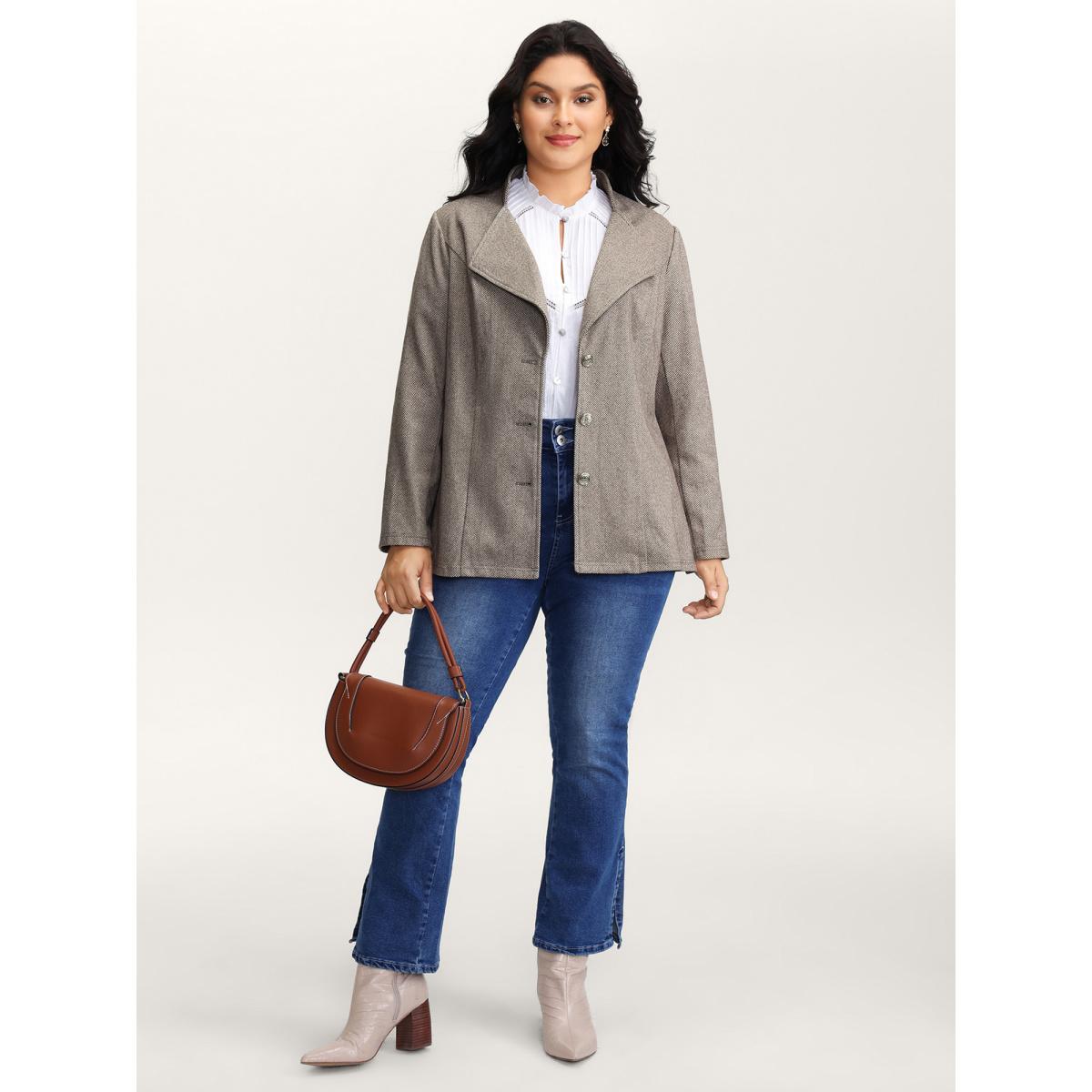 Plus Size Herringbone Pattern Cinched-Waist Jacket Women Multicolor Button Elegant Jackets BloomChic 22-24/3X