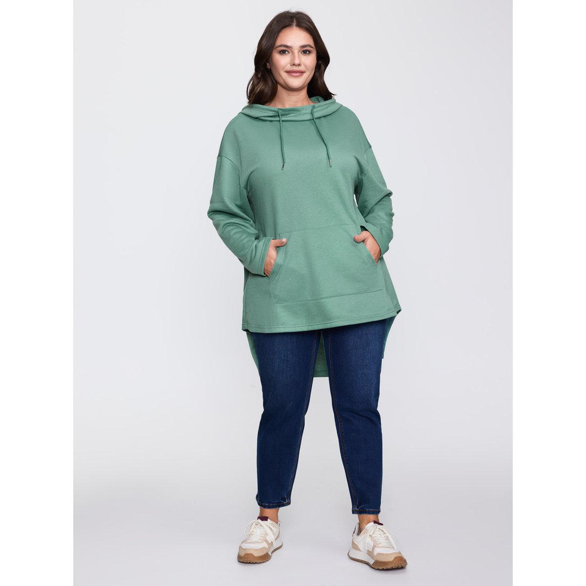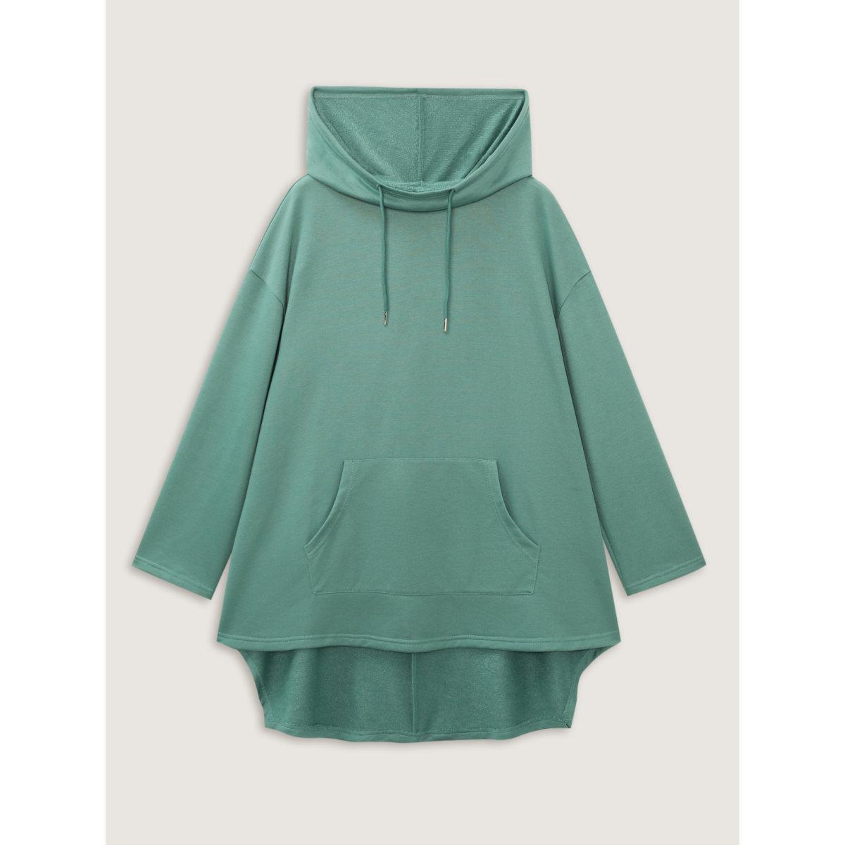 Plus Size High Low Hem Drop Shoulder Solid Hoodie Women Emerald Leisure Non Hooded Casual Sweatshirts BloomChic 10/M
