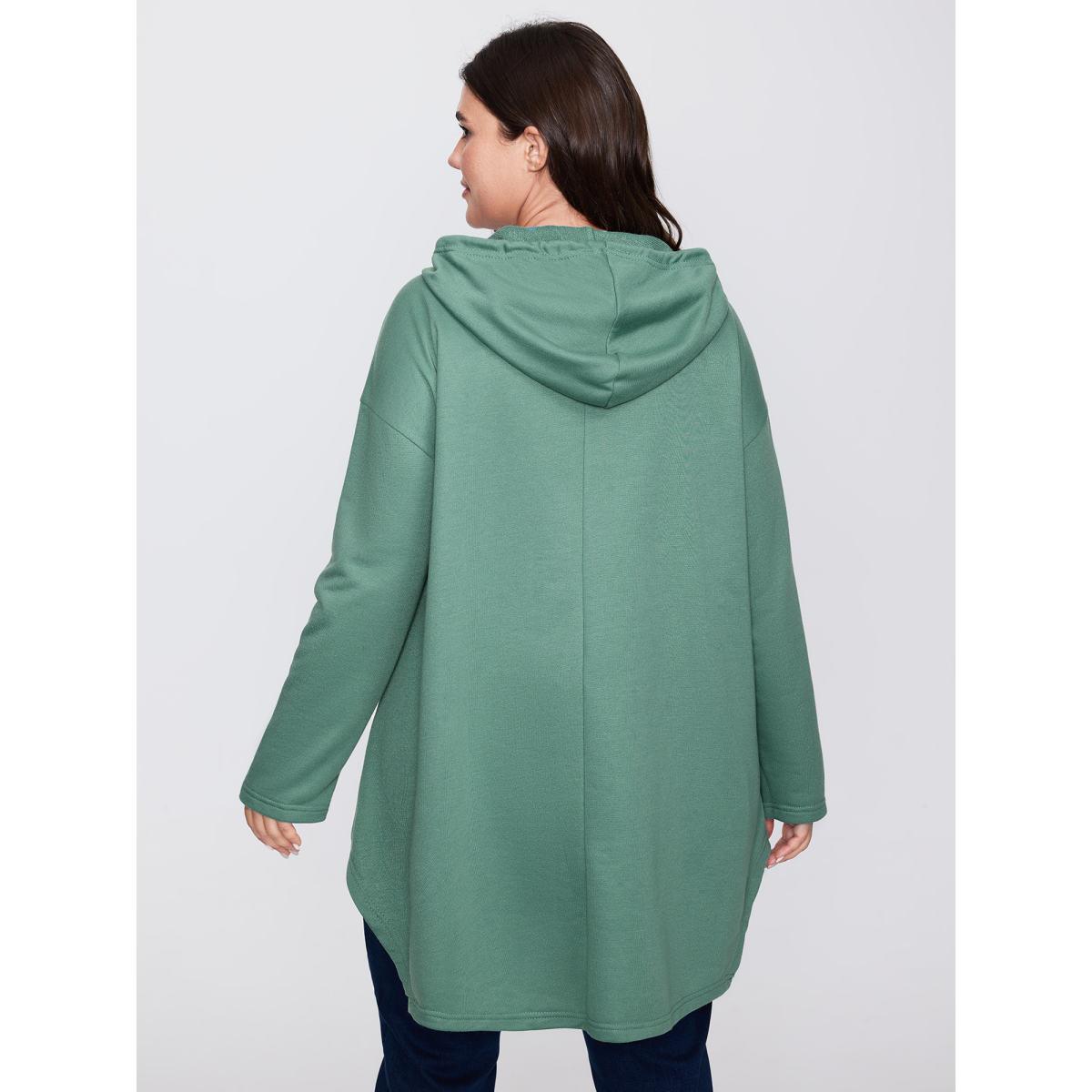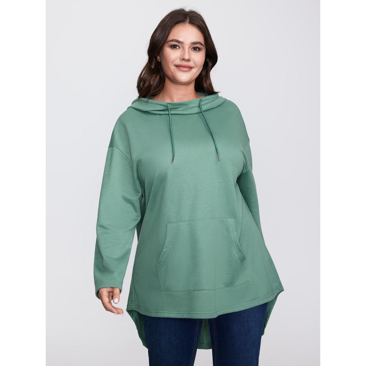 Plus Size Hooded Drawstring Asymmetrical Hem Sweatshirt Women DarkGreen Casual Drawstring Loose Hooded Everyday Sweatshirts BloomChic 26/4X