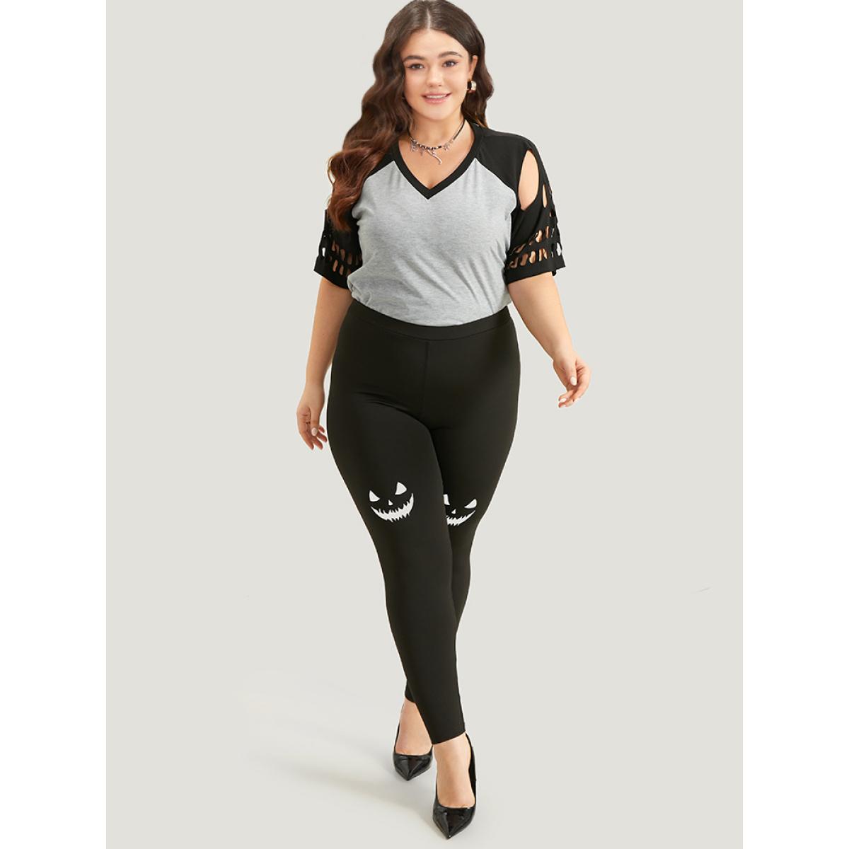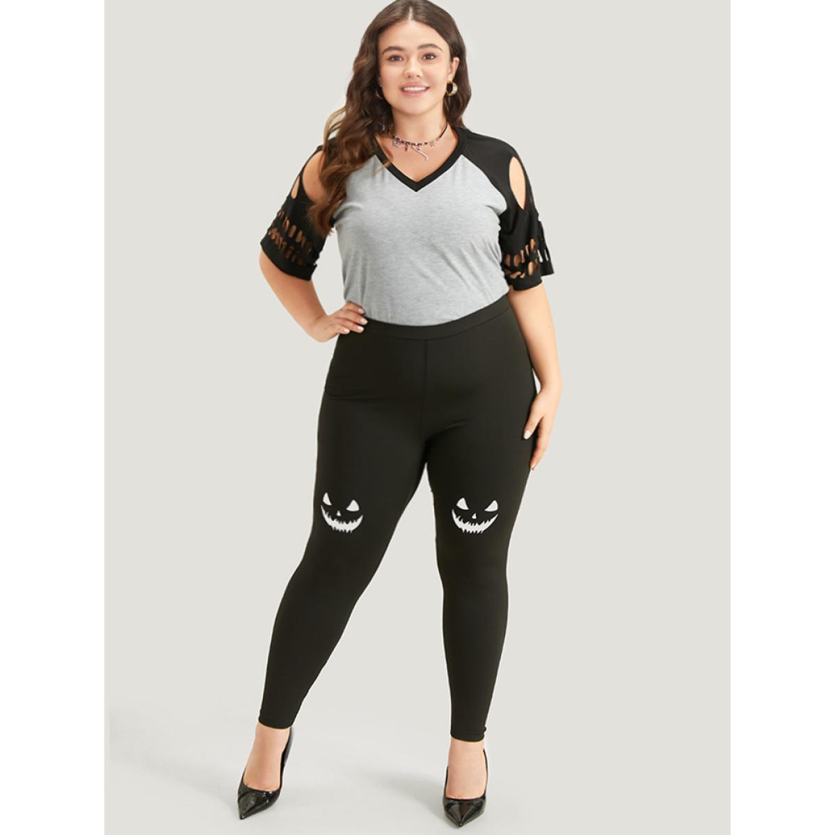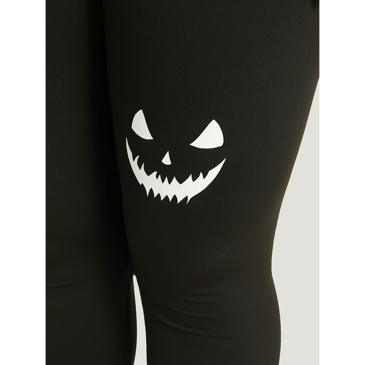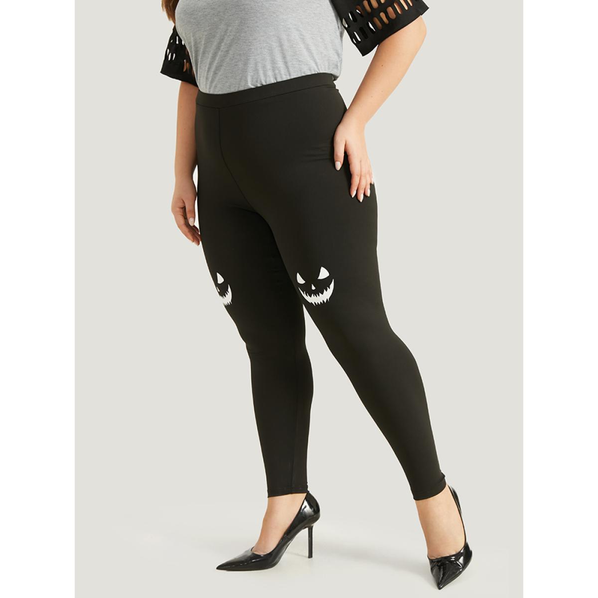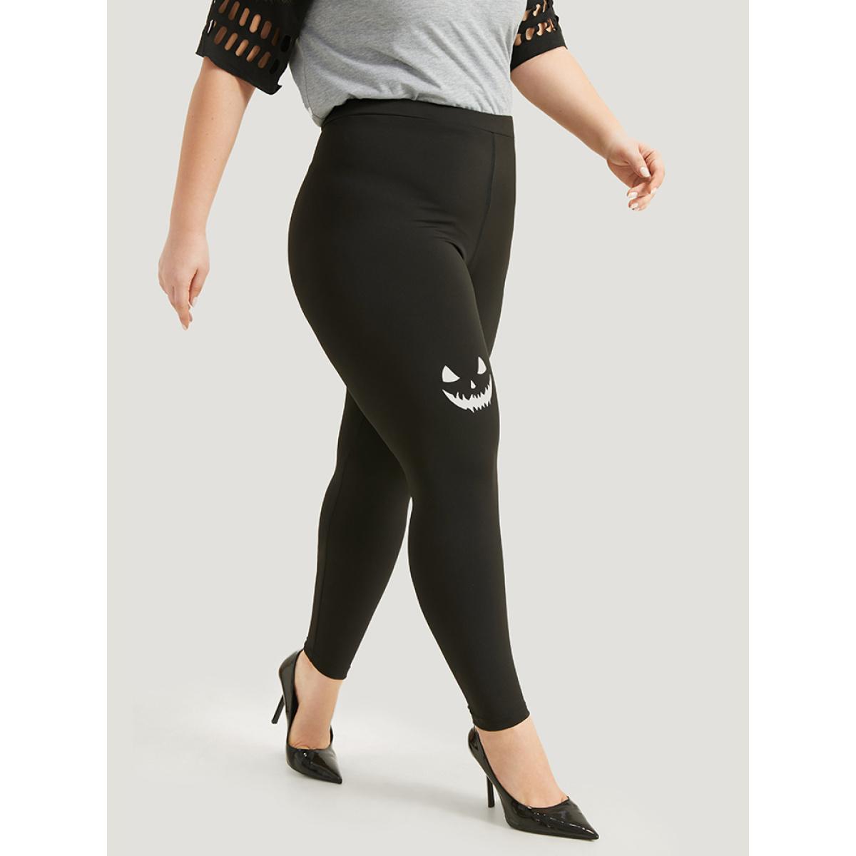 Plus Size High Rise Halloween Print Leggings Women Black Casual High stretch Skinny High Rise Festival-Halloween Leggings BloomChic 10/M