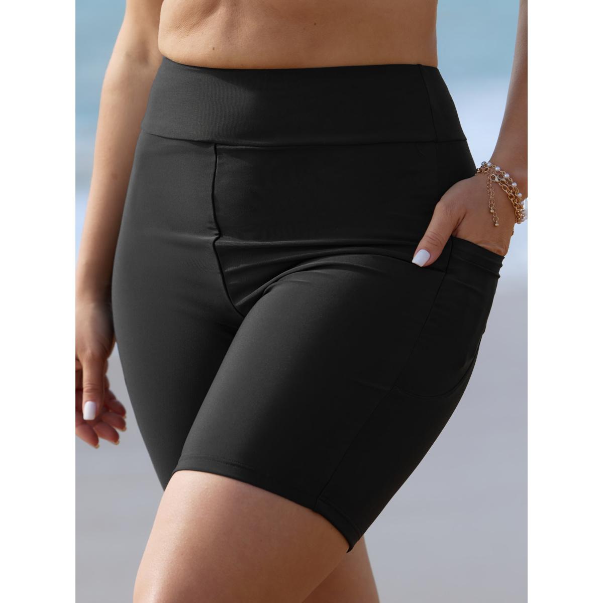 Plus Size High-Waist Pocket Swim Bottoms Women's Swimwear Black Resort High stretch Skinny High Rise Side seam pocket Curve Swim Bottoms BloomChic 12/L