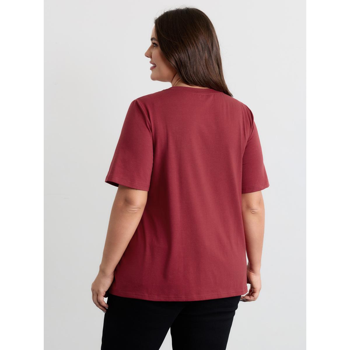 Plus Size Christmas Print Round Neck T-shirt Red Women Casual Printed Christmas Festival-Christmas T-shirts BloomChic 12/L