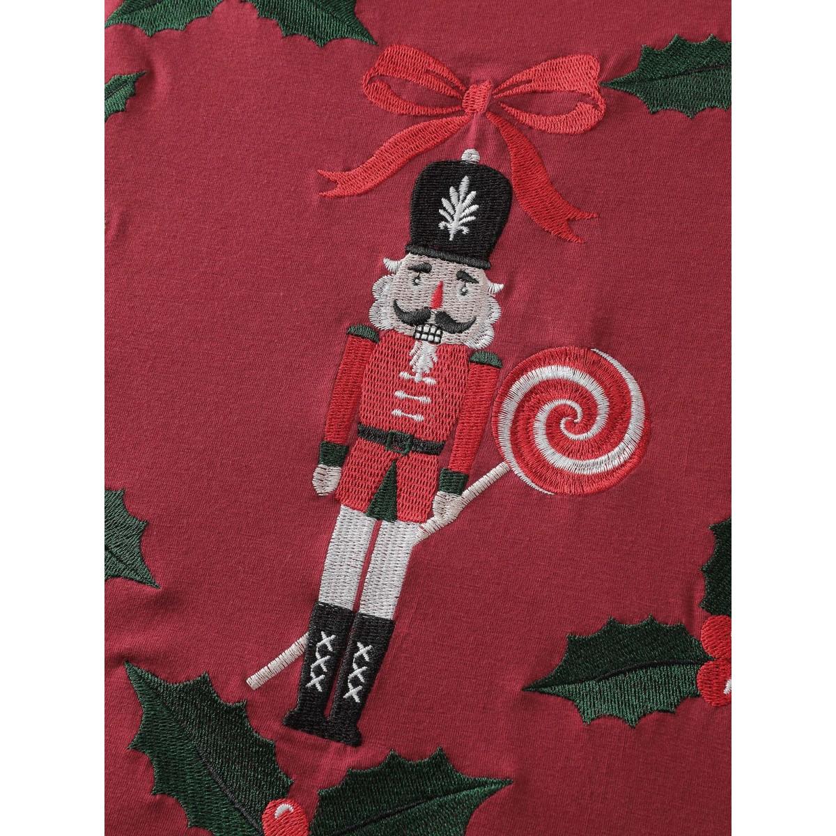 Plus Size Holiday Nutcracker Round Neck T-Shirt Burgundy Women Playful Christmas Round Neck Casual T-shirts BloomChic 28/5X Product Image