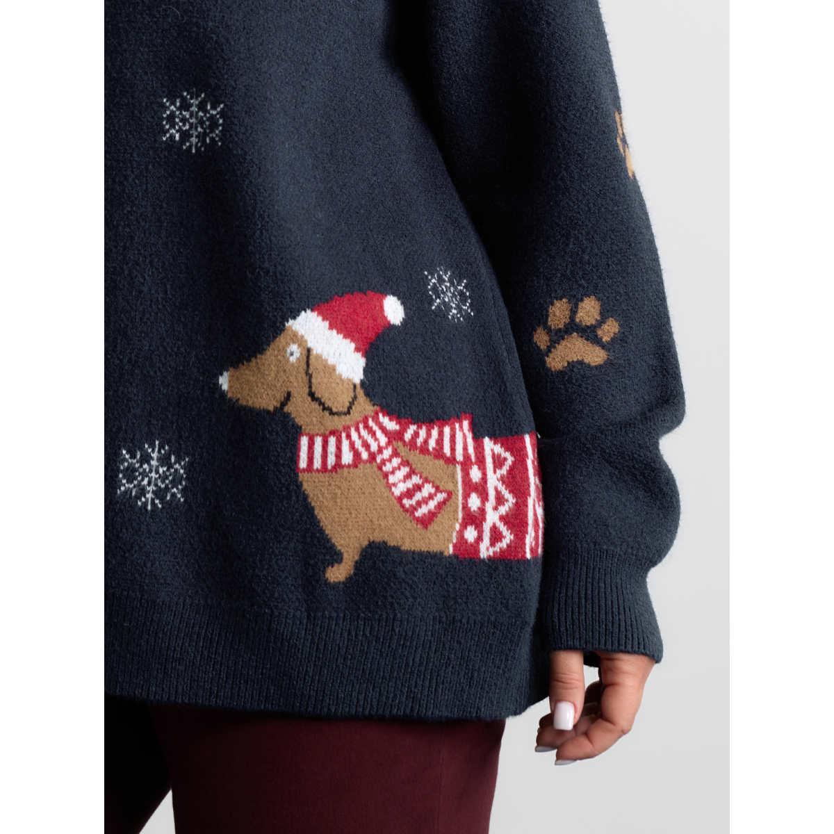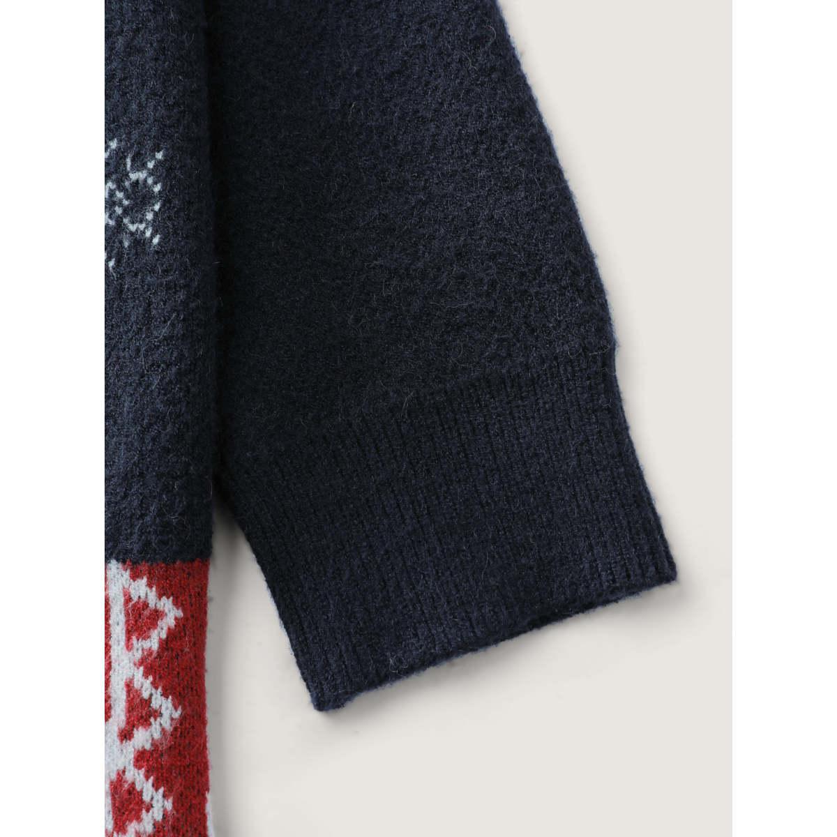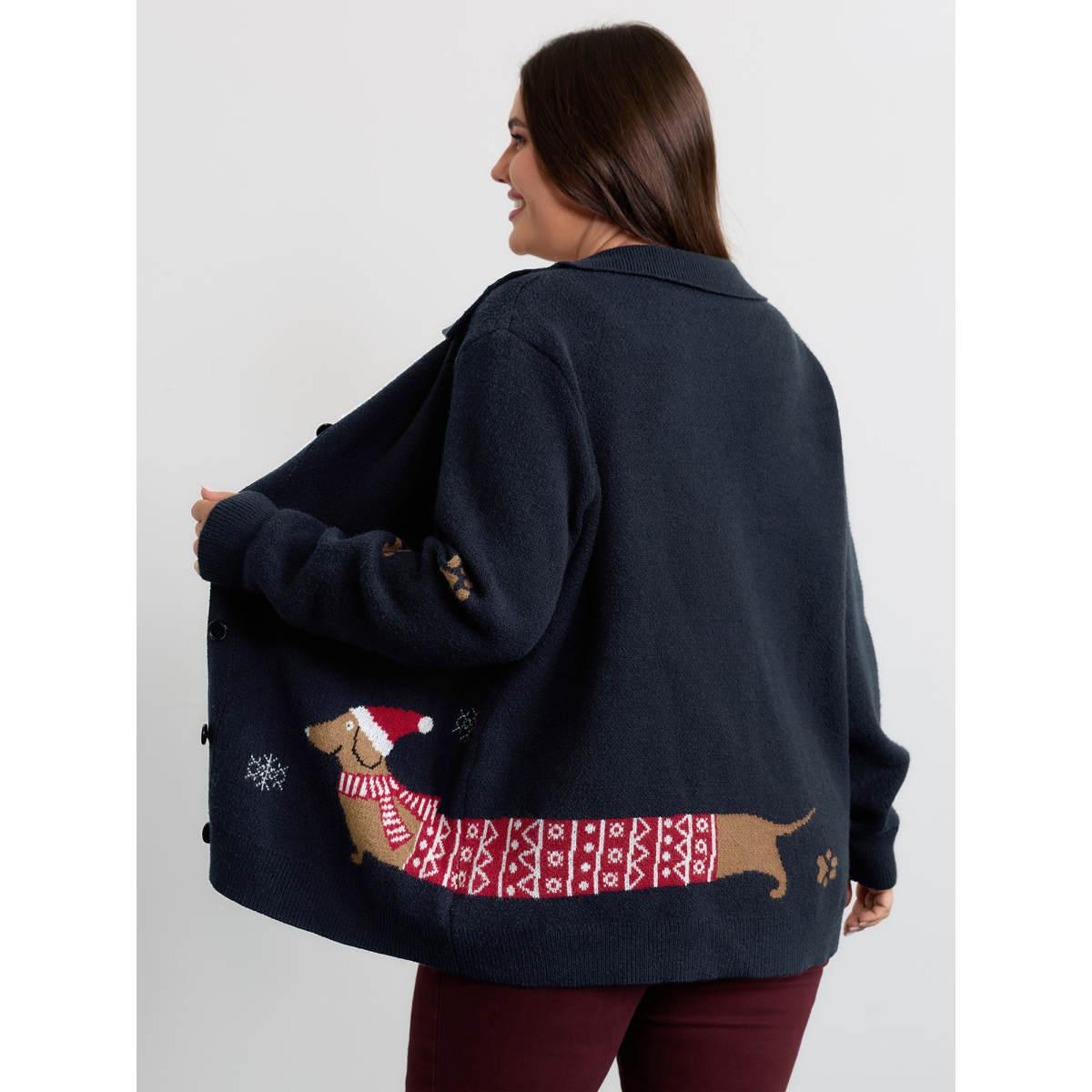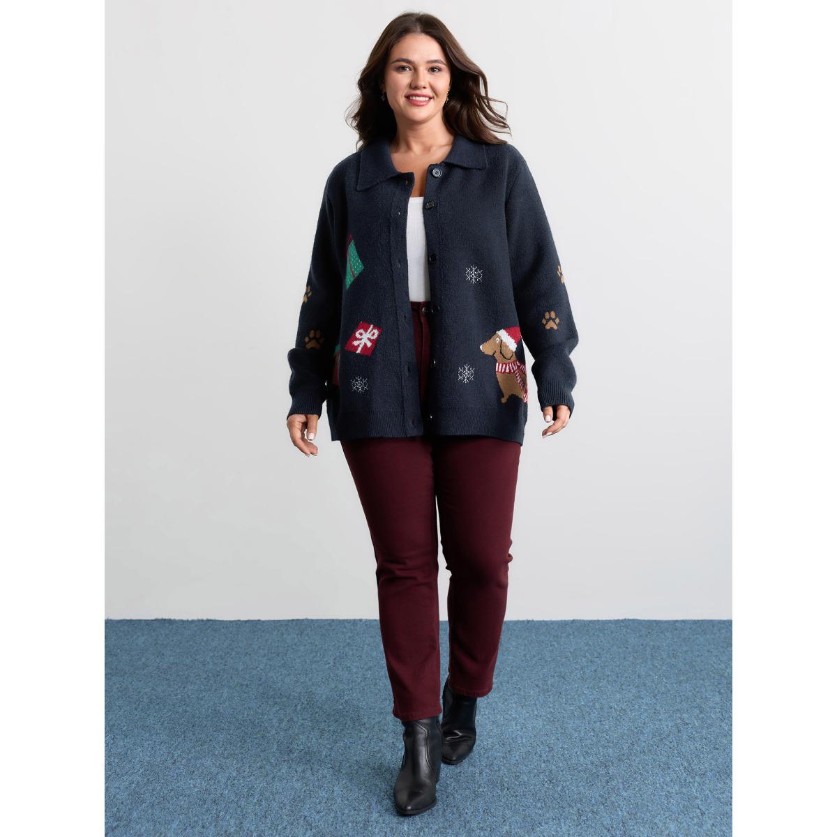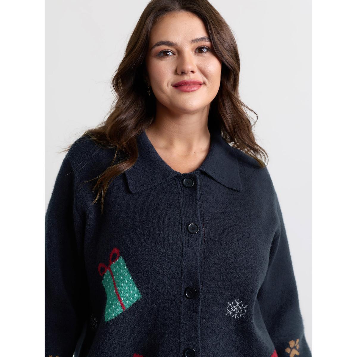 Plus Size Holiday Pattern Collar Button Knit Cardigan Indigo Women Playful Loose Long Sleeve Casual Cardigans BloomChic 18-20/2X