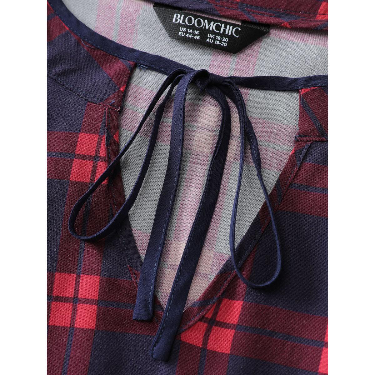 Plus Size Plaid Pocket Contrast Lace V Neck Midi Dress Red Women Elegant Patchwork V-neck Long Sleeve Curvy Midi Dress BloomChic 10/M