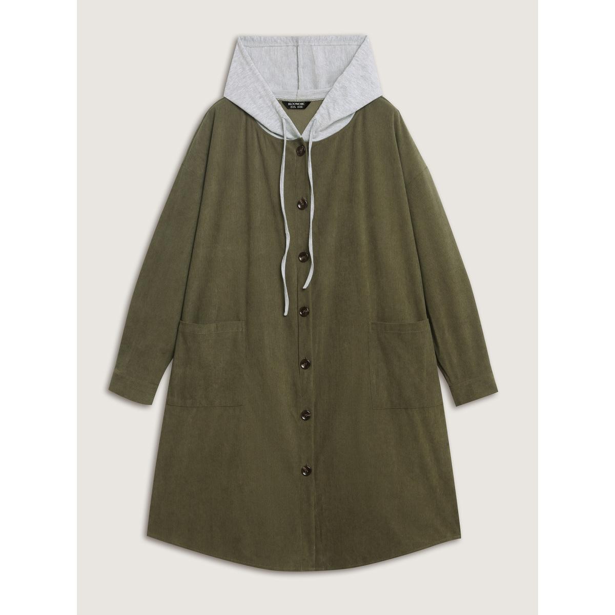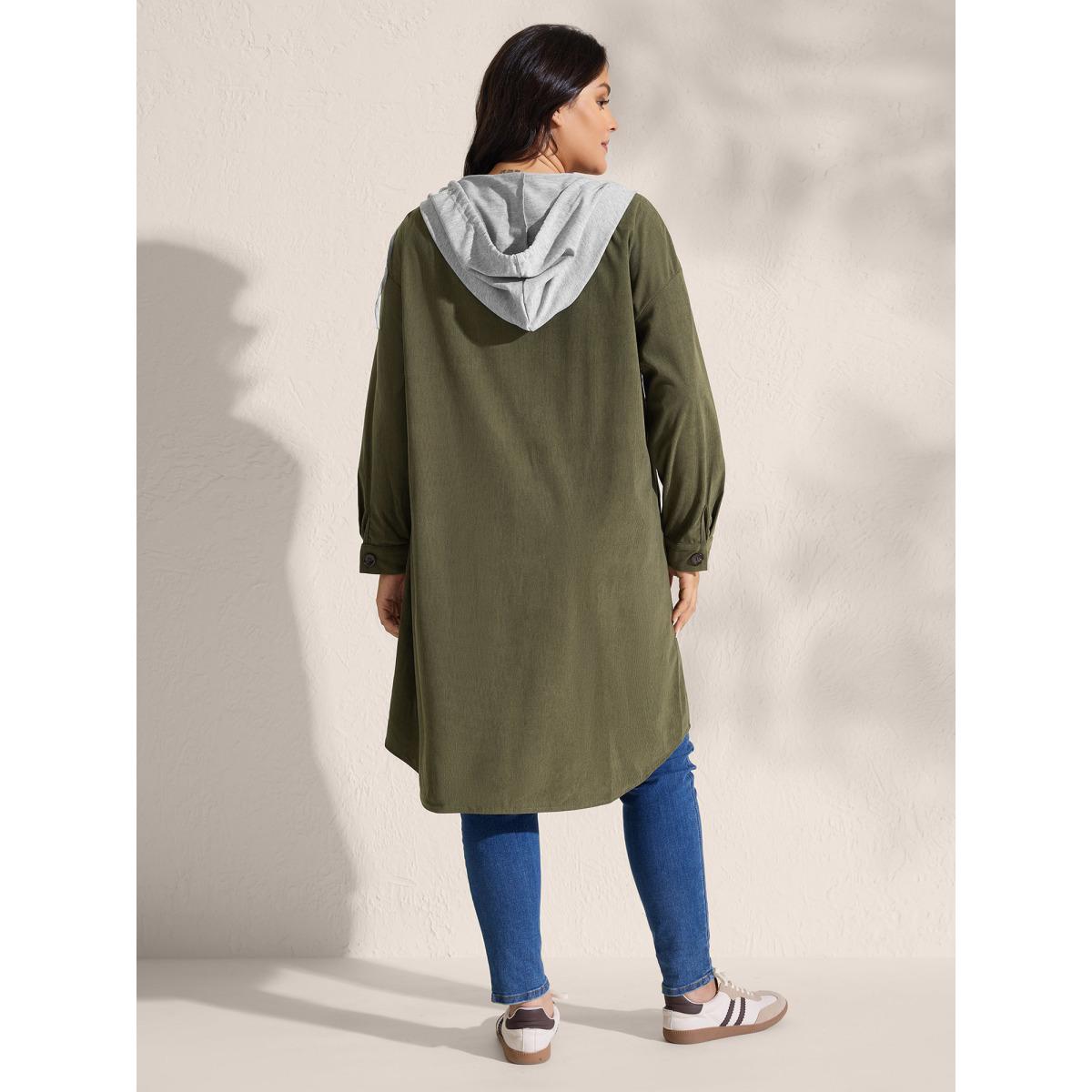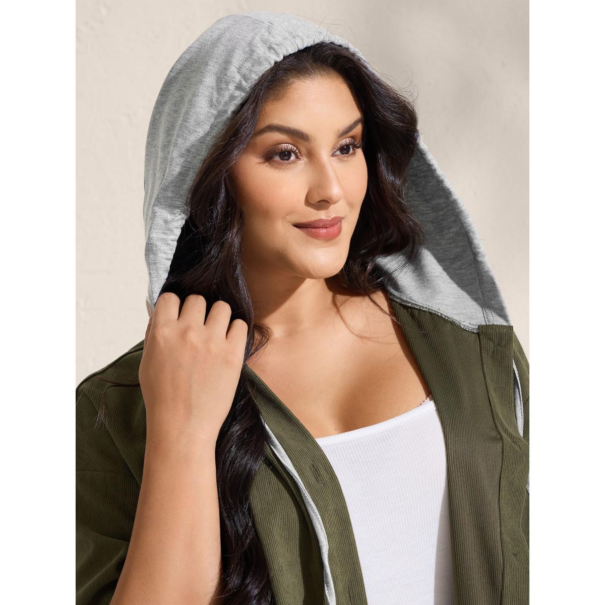 Plus Size Hooded Button-Front Pockets Jacket Women ArmyGreen Contrast Loose Patch pocket Casual Jackets BloomChic 22-24/3X Product Image