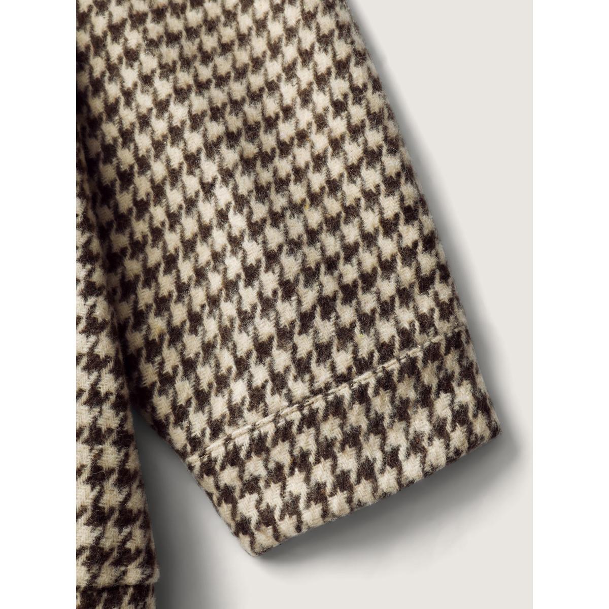 Plus Size Houndstooth Fleece Pockets Button Jacket Women DarkBrown Button Slanted pocket Casual Jackets BloomChic 14-16/1X Product Image