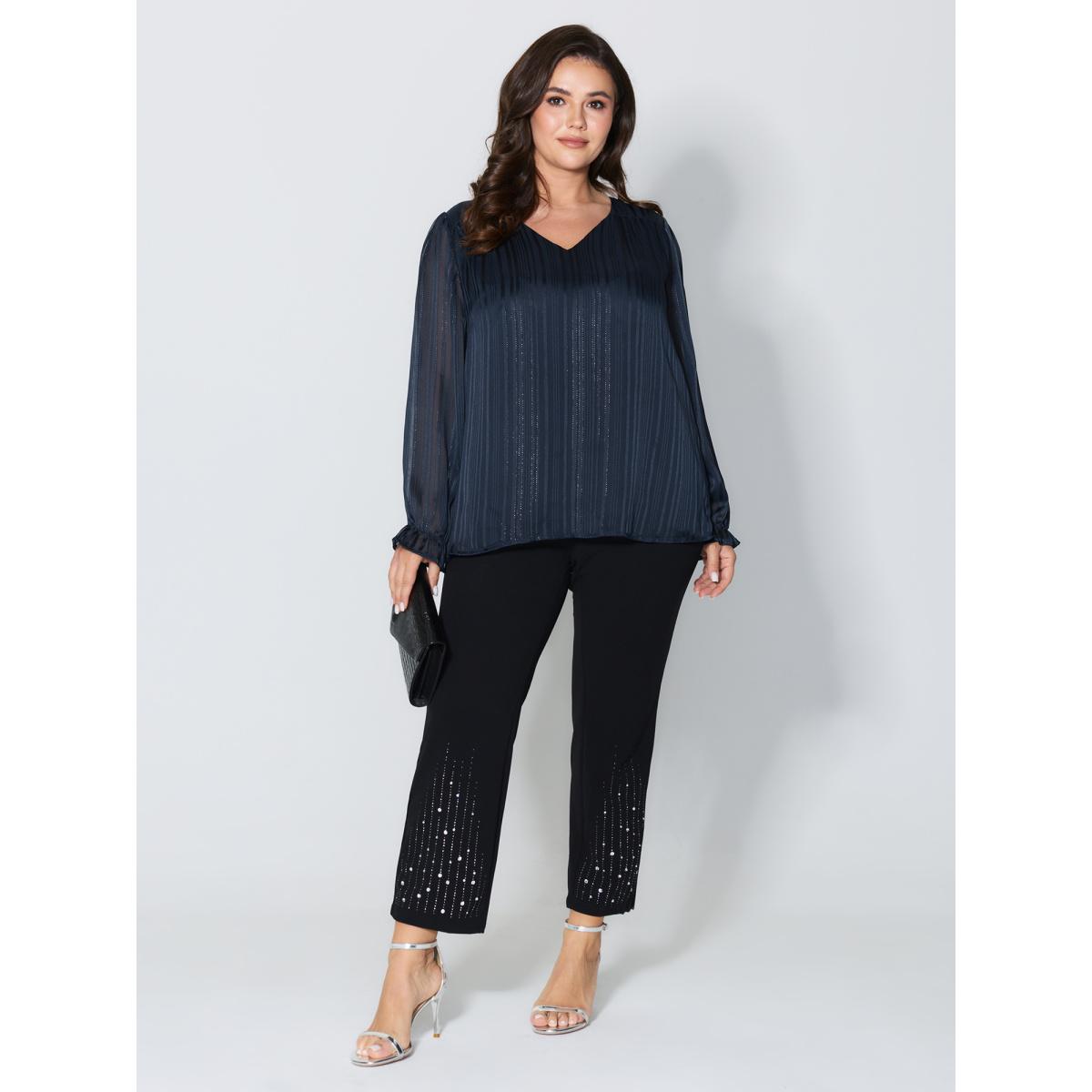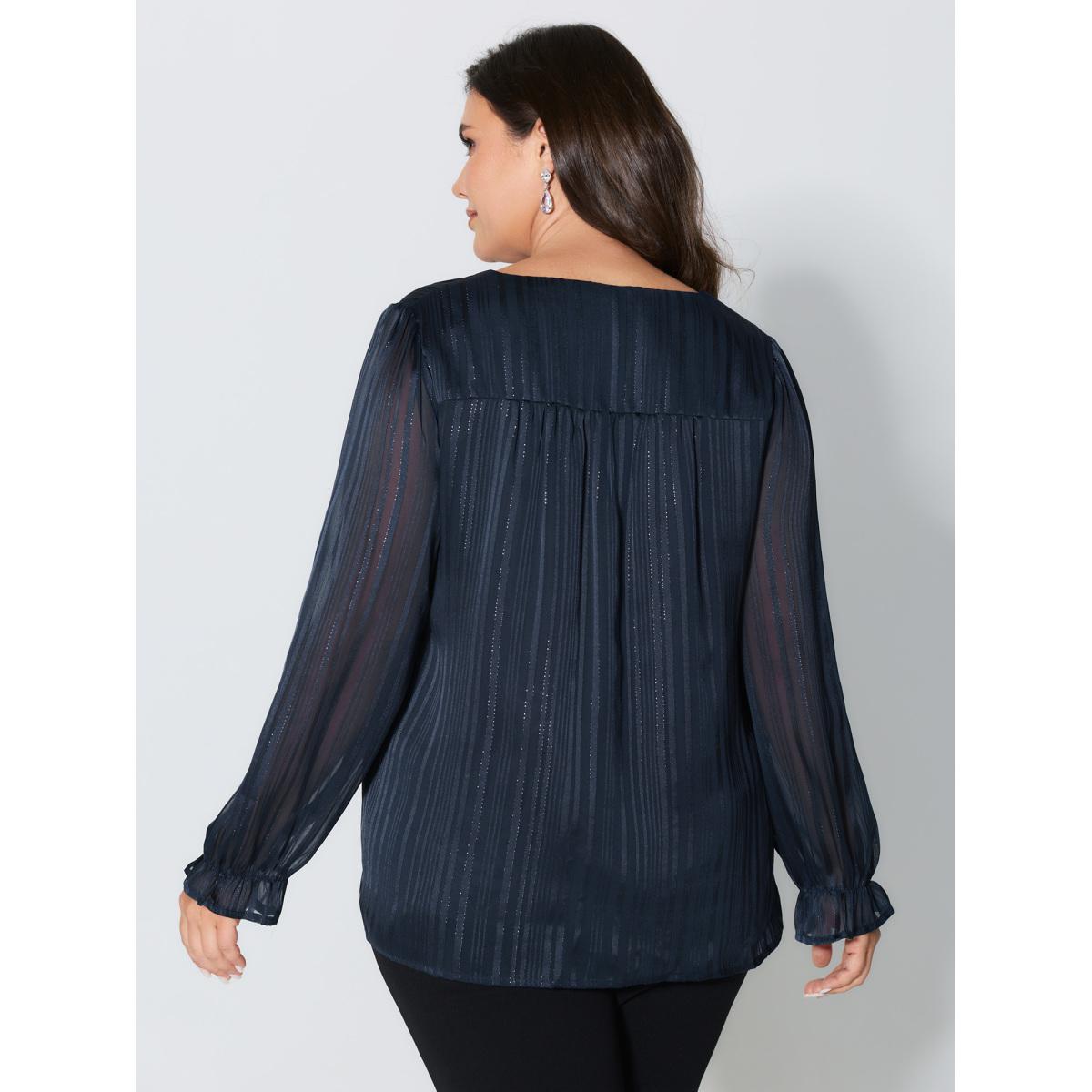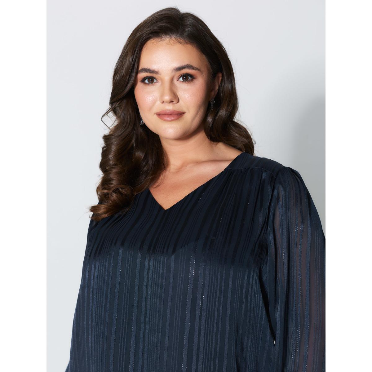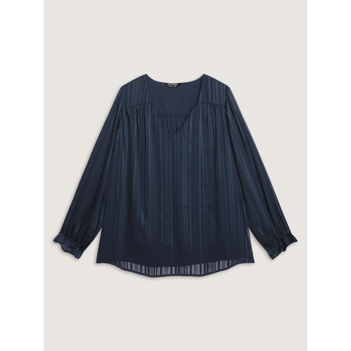 Plus Size Indigo V Neck Luxe Shirred Cuff Blouse Women Office Extra Long Sleeve V-neck Office Blouses BloomChic 30/6X