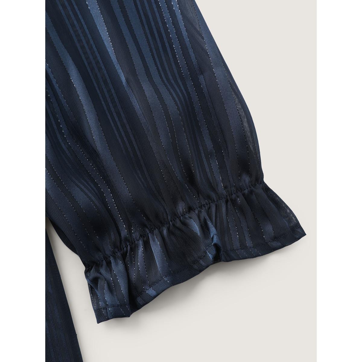 Plus Size Indigo Mixed Fabric Sheer Puff Sleeve Shirt Women At the Office Extra Long Sleeve V-neck Work Blouses BloomChic 28/5X