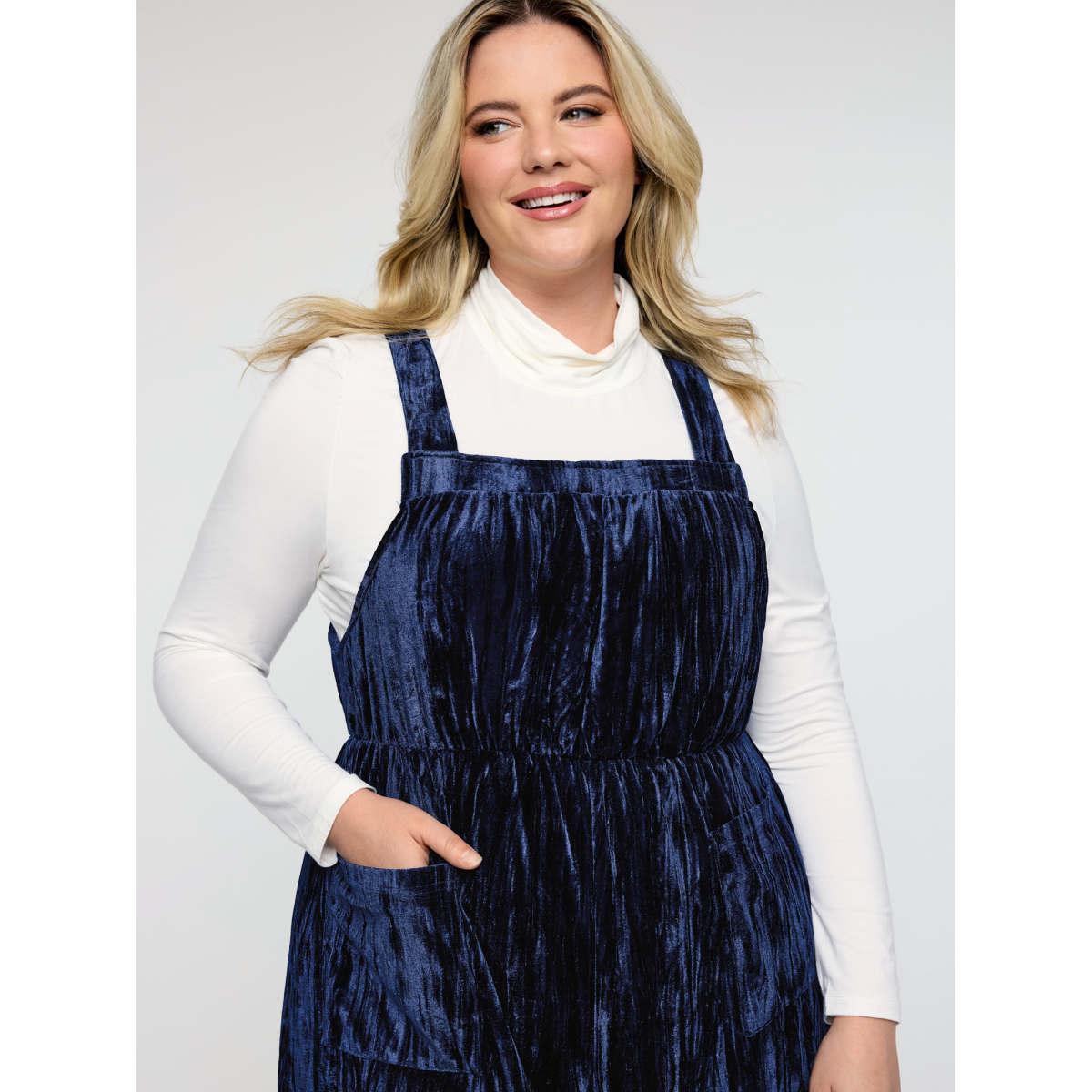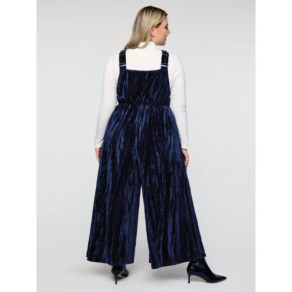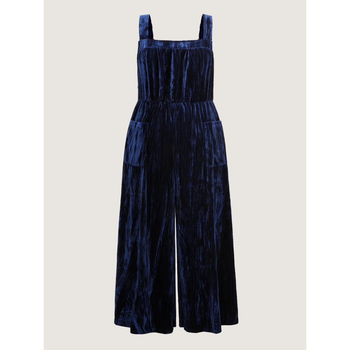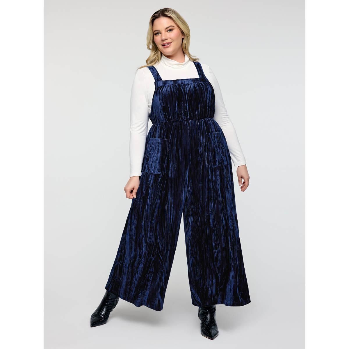 Plus Size Indigo Velvety Texture Adjustable Pockets Overall Jumpsuit Women Sleeveless Non Casual Loose Jumpsuits BloomChic 26/4X
