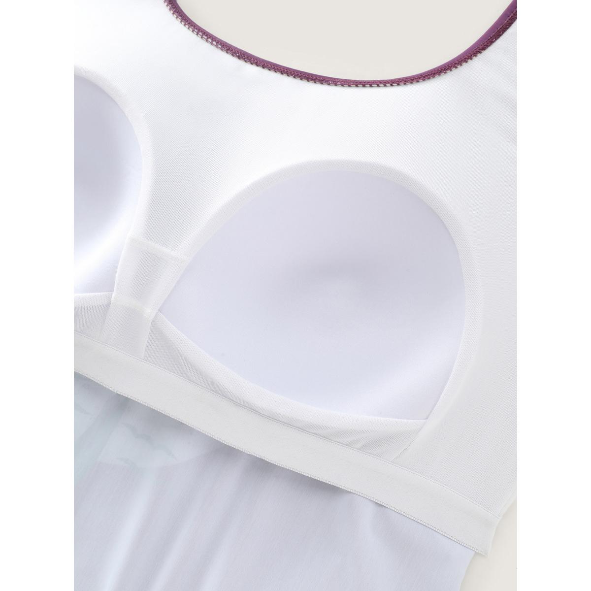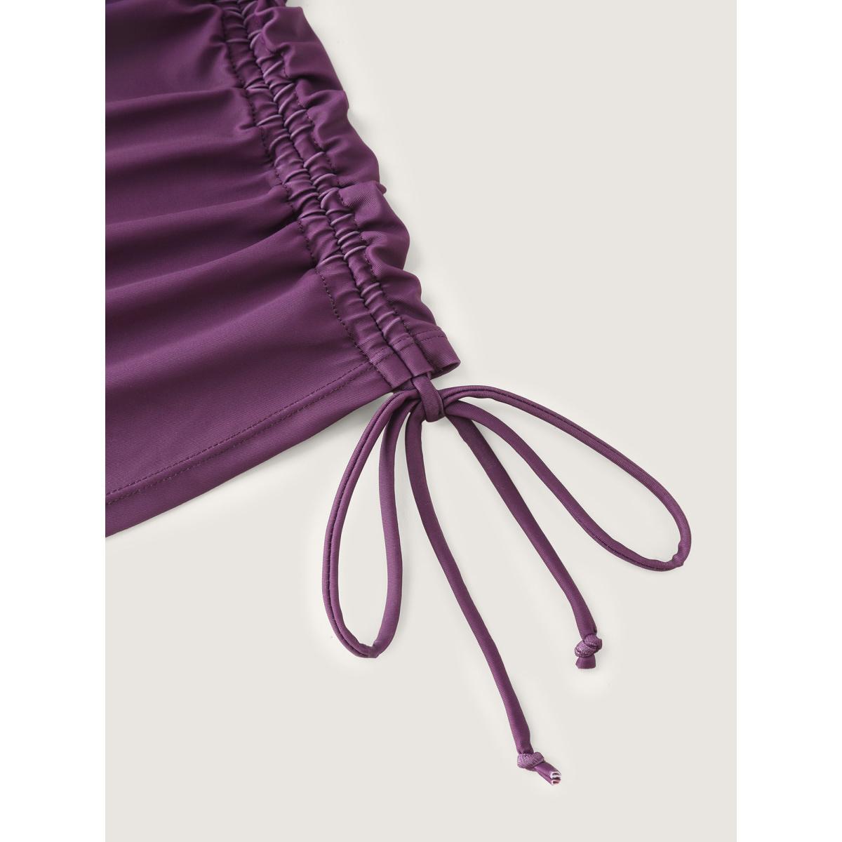 Plus Size Island Print Drawstring Adjustable Swim Top Women's Swimwear Eggplant Resort Contrast High stretch Bodycon U-neck Curve Swim Tops BloomChic 14-16/1X