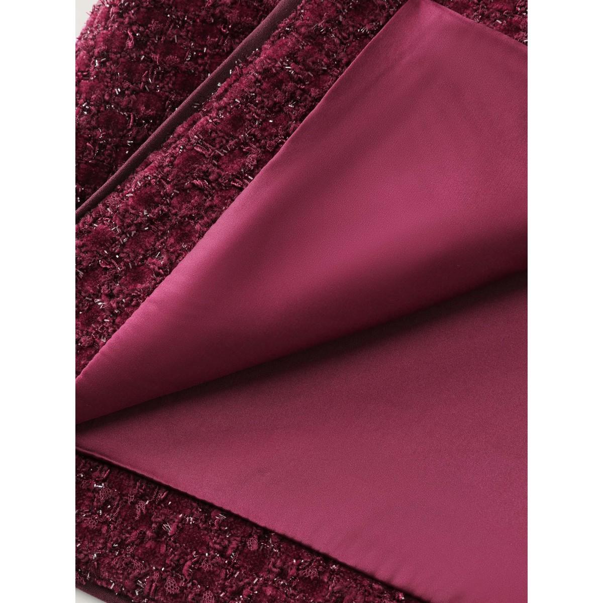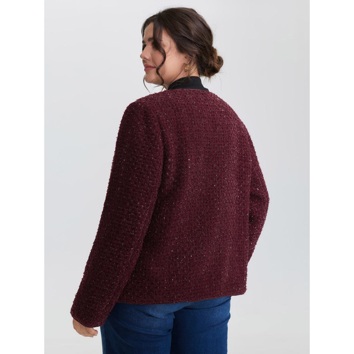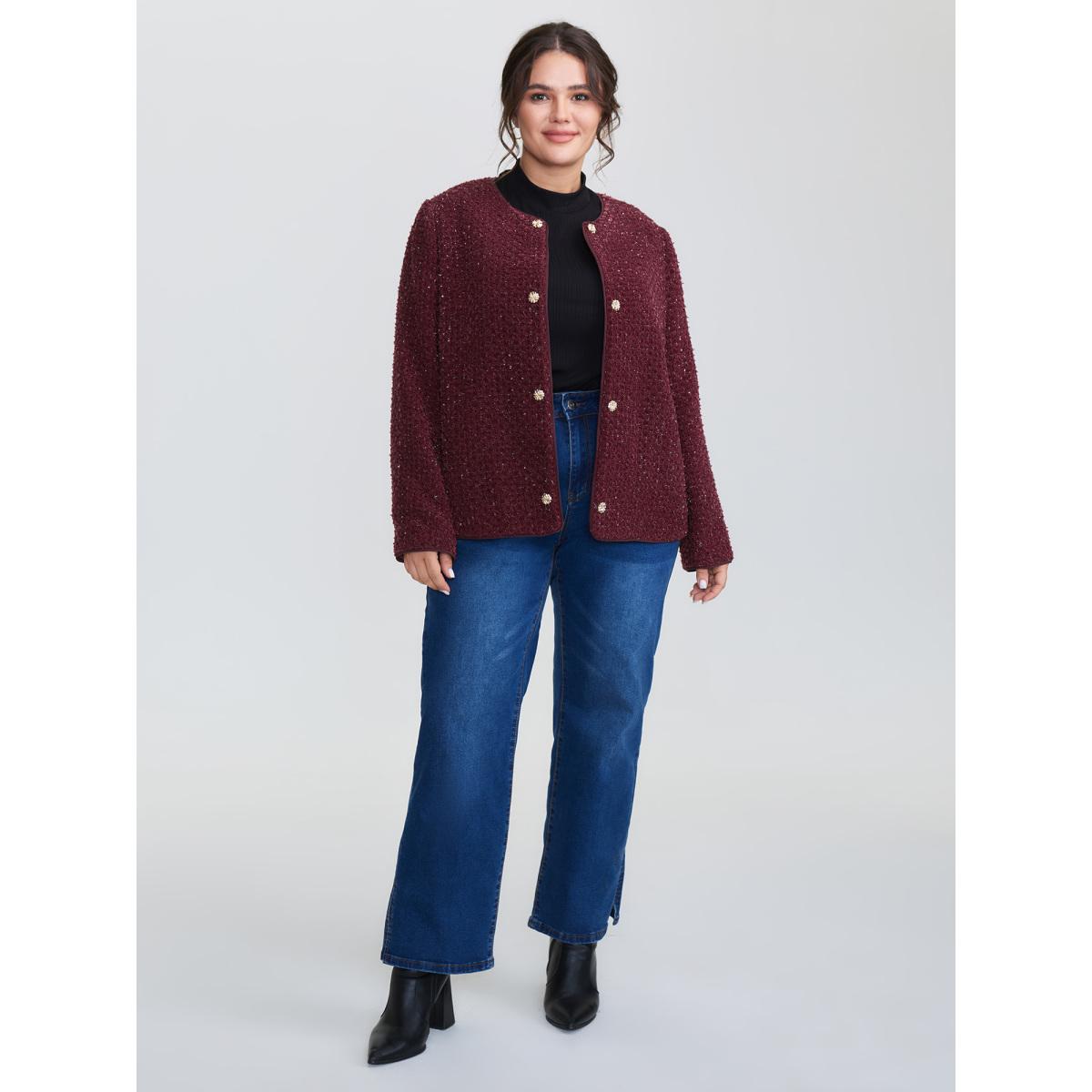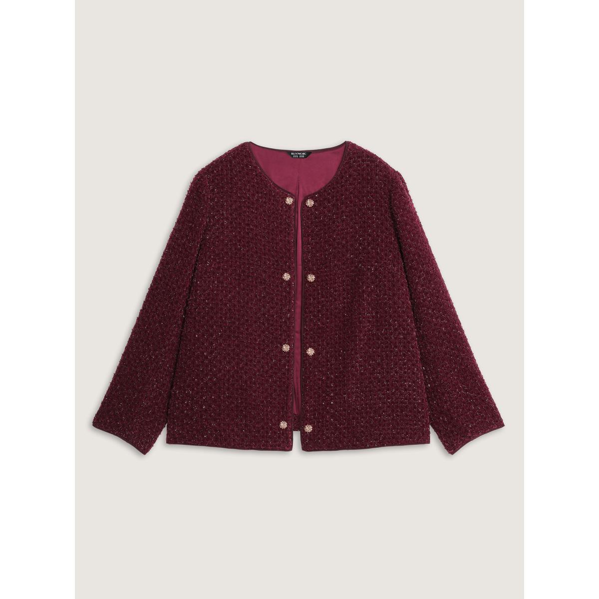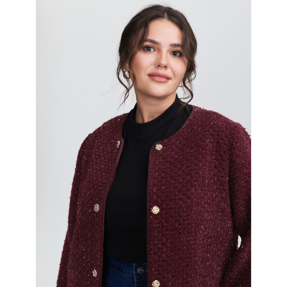 Plus Size Jacquard Textured Gold Button Blazer Burgundy Women Elegant Sleeve Long Sleeve Round Neck 28/5X Retro Blazers BloomChic
