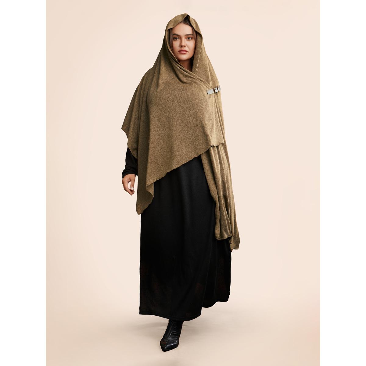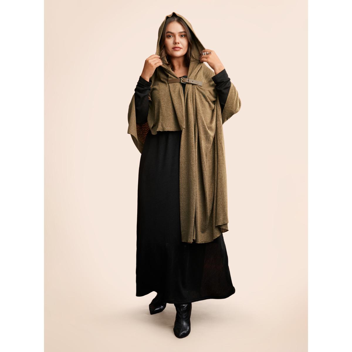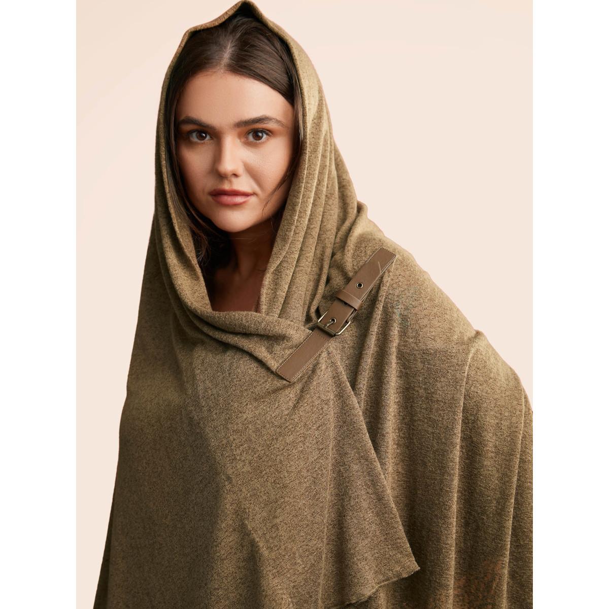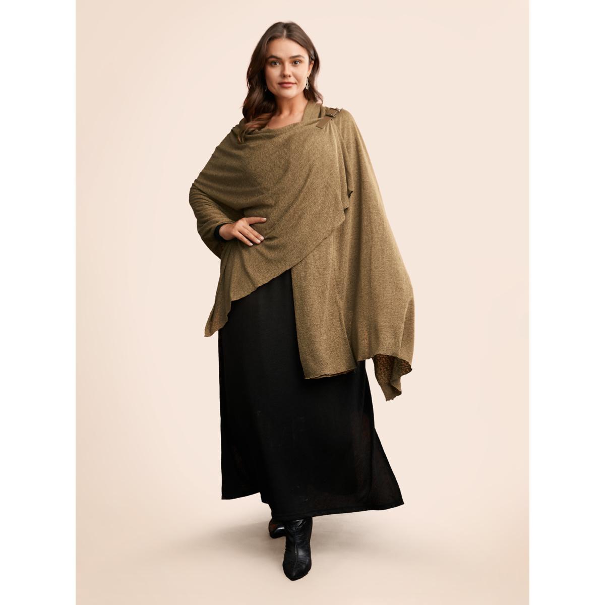 Plus Size Knitted Leather Buckle Cape Styled Shawl Women Yellowishbrown Elegant Asymmetrical Loose Ladies Everyday Winter Coats BloomChic 12/L