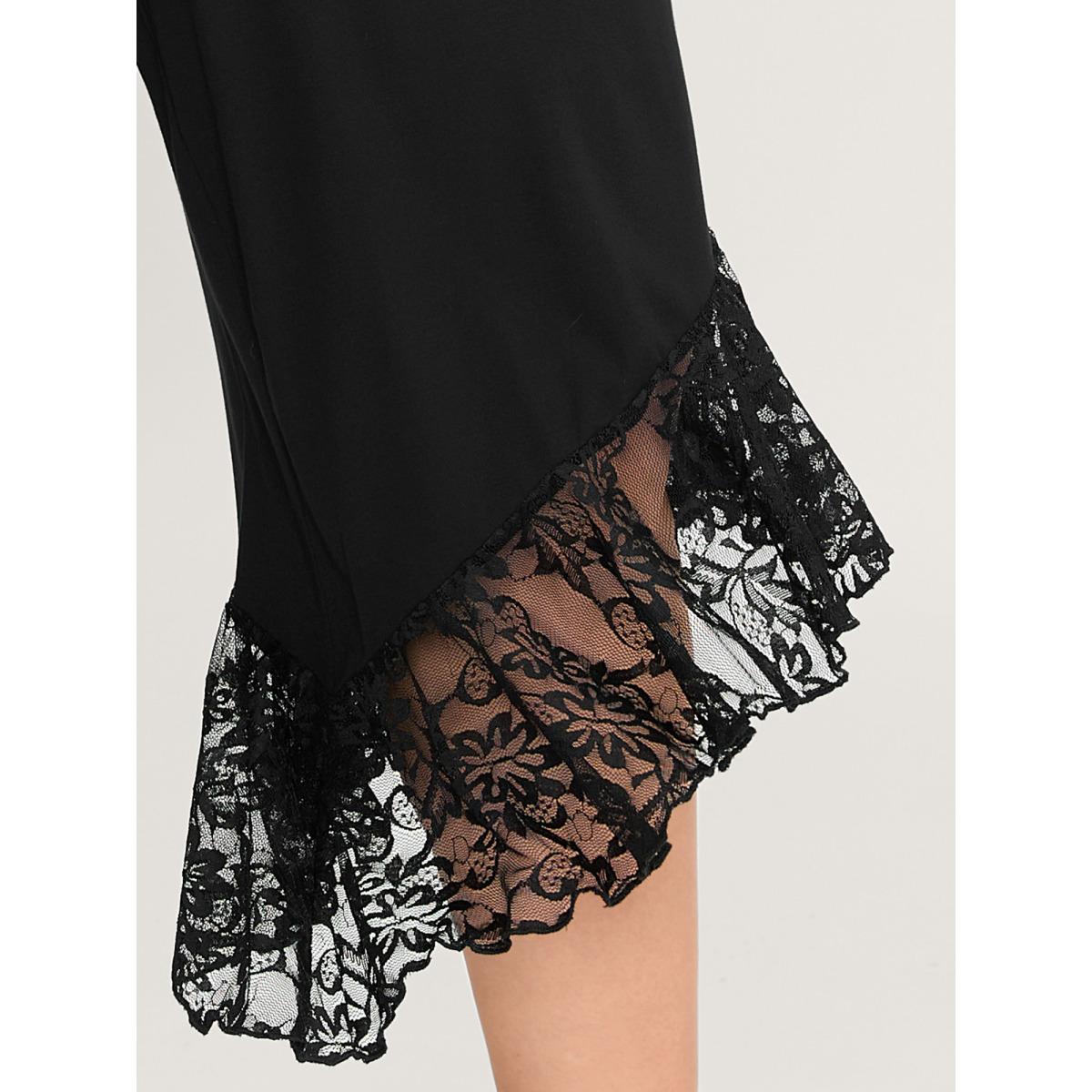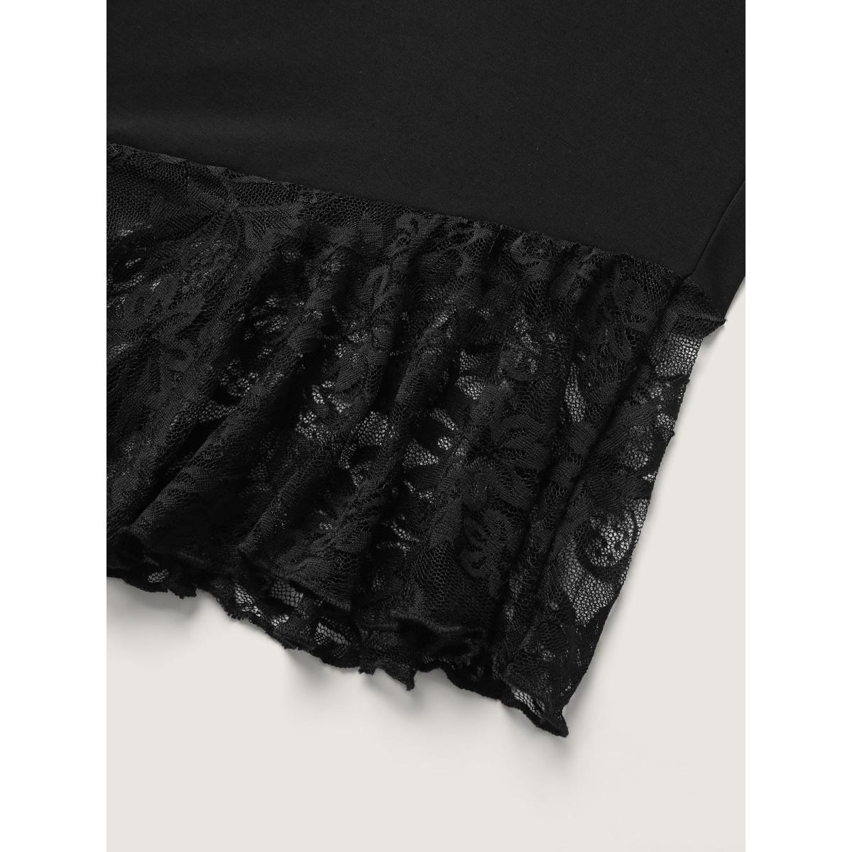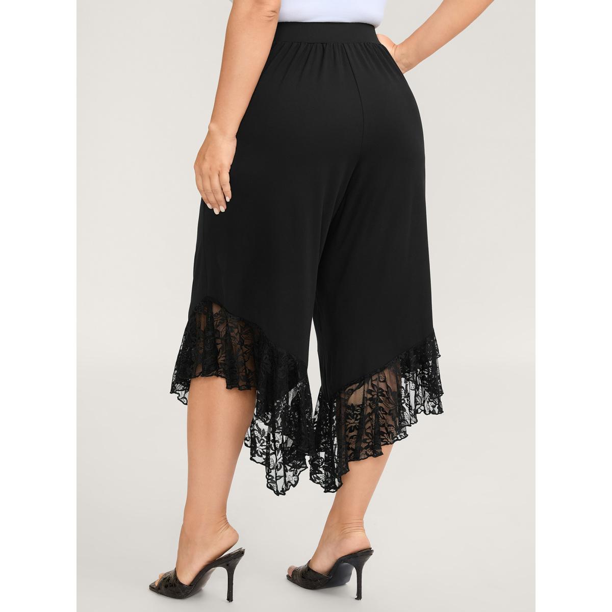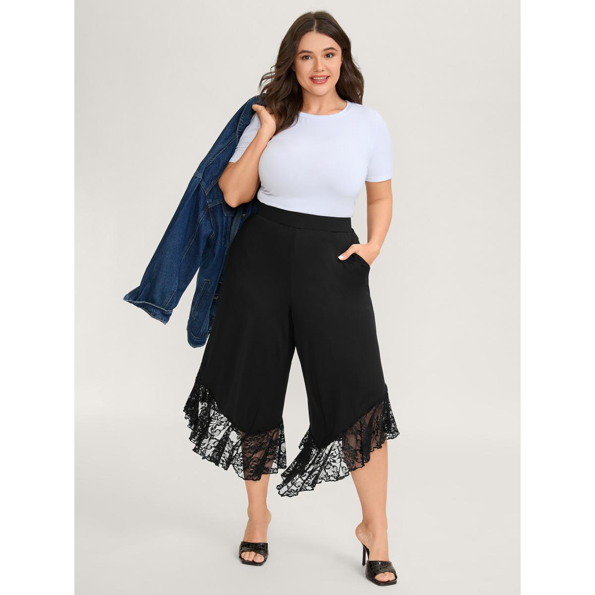 Plus Size Lace Sheer Hem Wide Leg Pants Women Black Romantic Loose Mid Rise Elegant Pants BloomChic 12/L