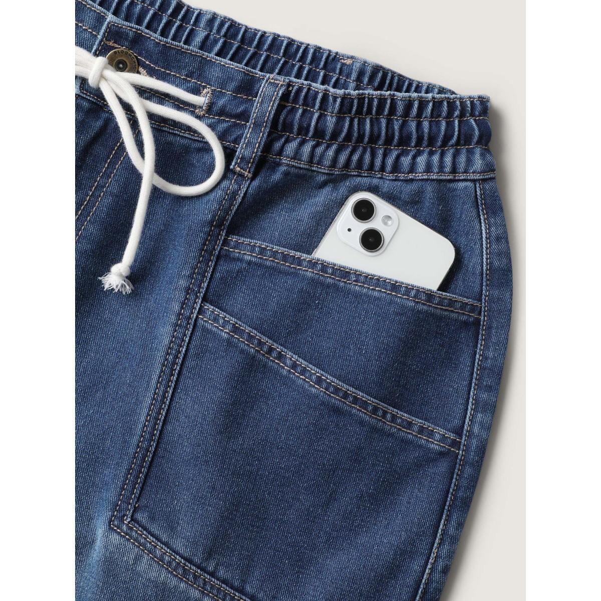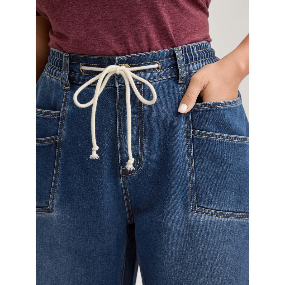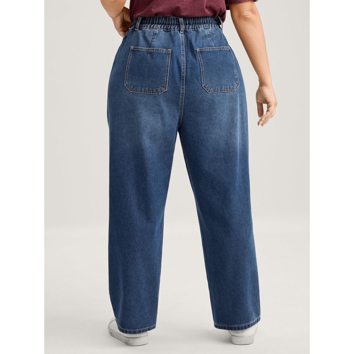 Plus Size Layered Pockets Elastic Waistband Straight-Leg Jeans Women Darkindigo Leisure Elastic Waist Medium stretch Slanted pocket Jeans BloomChic 14/1X