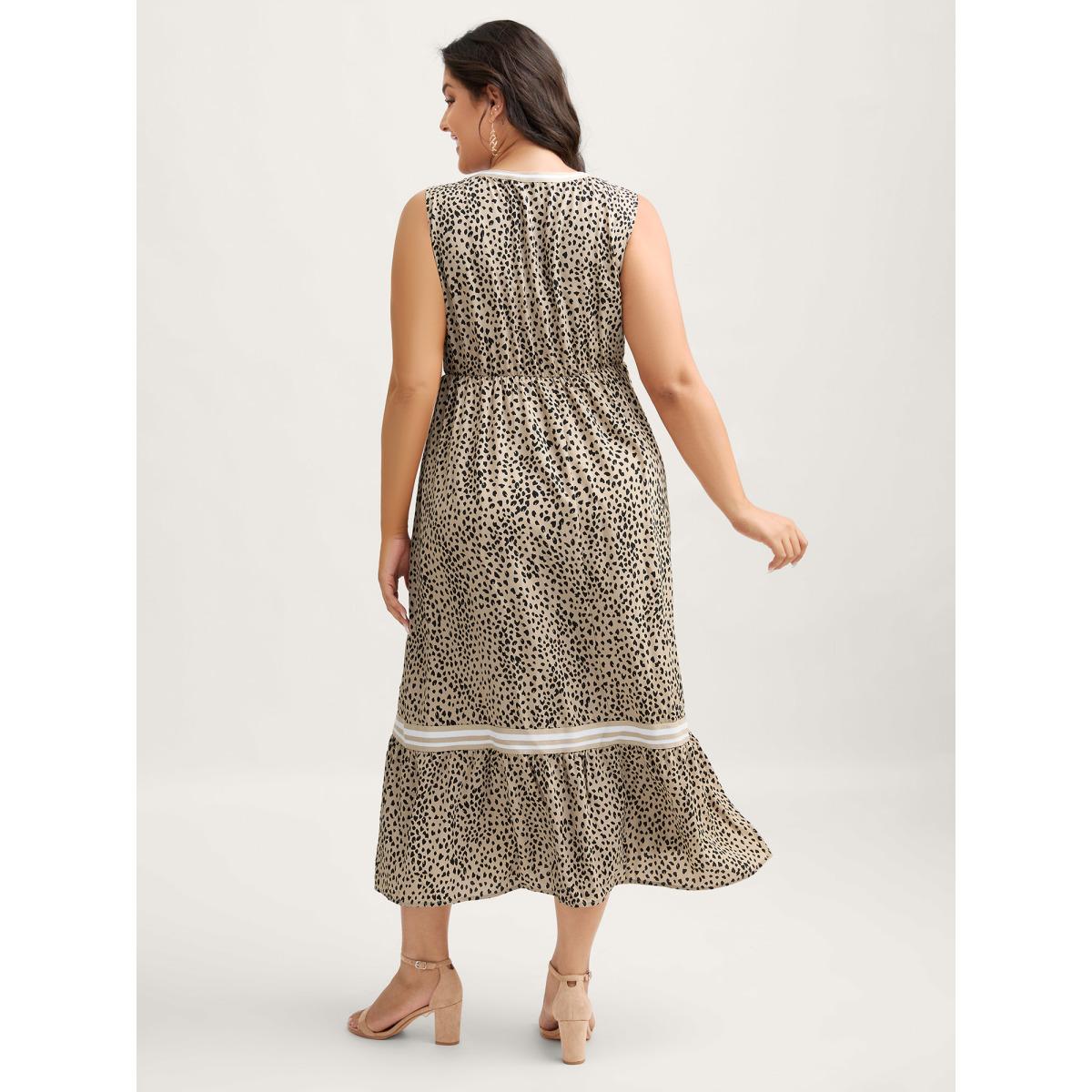 Plus Size Leopard Print Flutter Hem Pocket Adjustable Straps Cami Dress Multicolor Women Elegant Adjustable Straps V-neck Sleeveless Curvy Midi Dress BloomChic 28/5X
