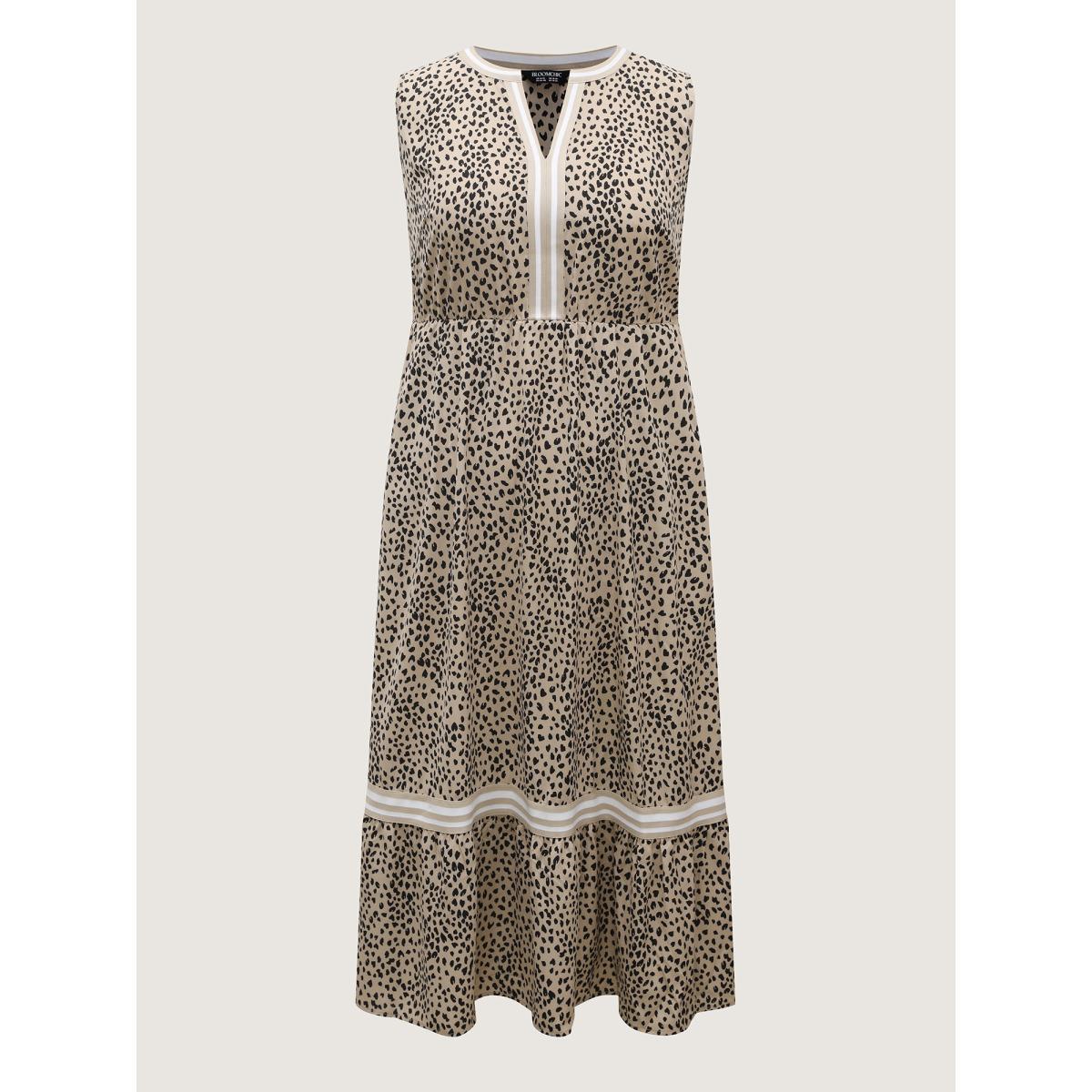 Plus Size Leopard Print V-Neck Pockets Midi Dress Tan Women Romantic V-neck Sleeveless Curvy BloomChic 28/5X