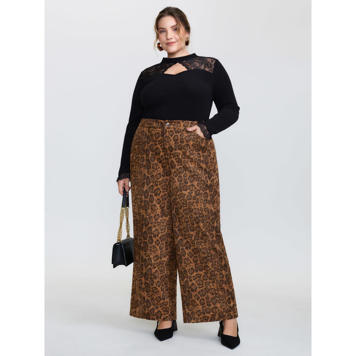 Plus Size Leopard Print Wide-Leg Pants Women Leopard Timeless Loose Mid Rise Elegant Pants BloomChic 22-24/3X