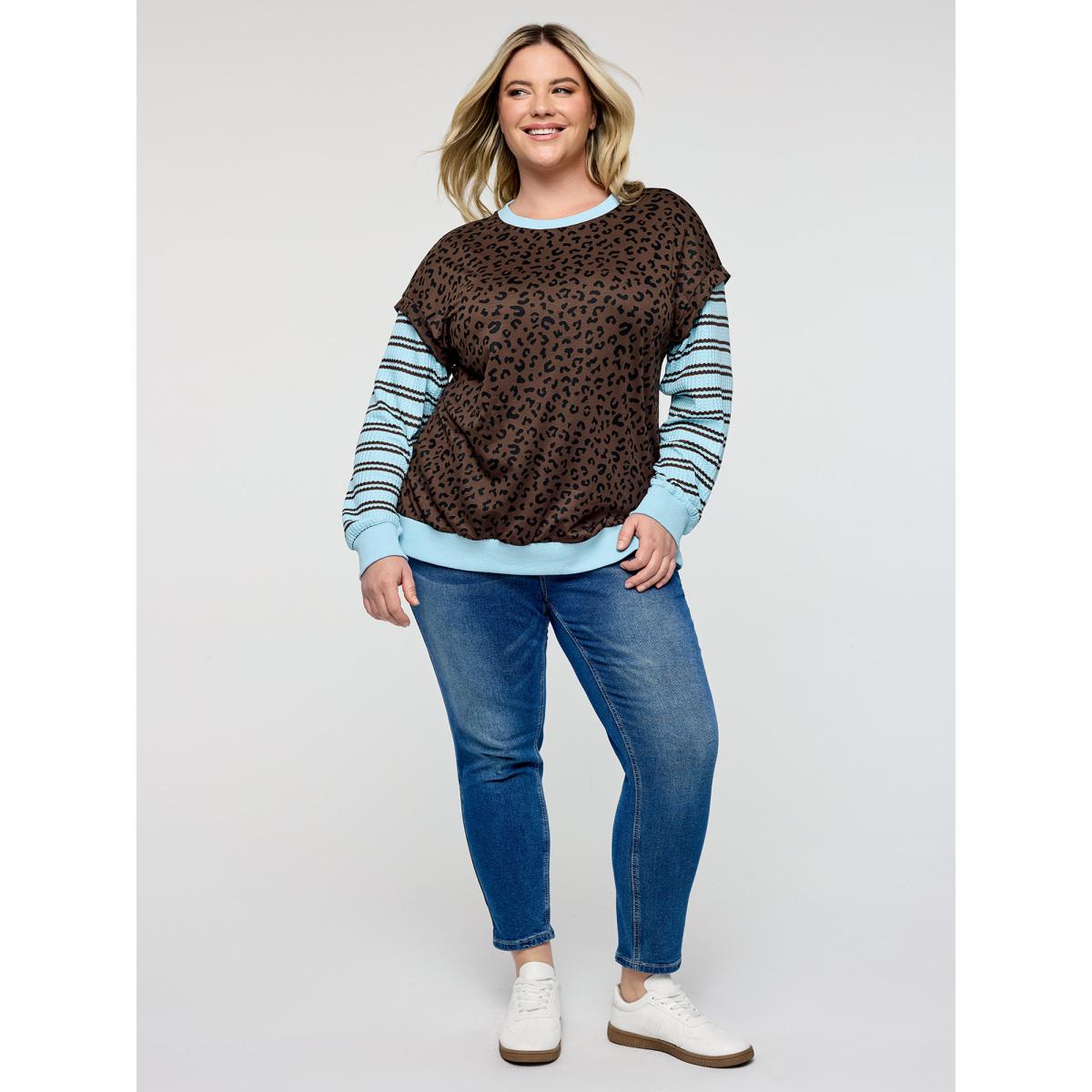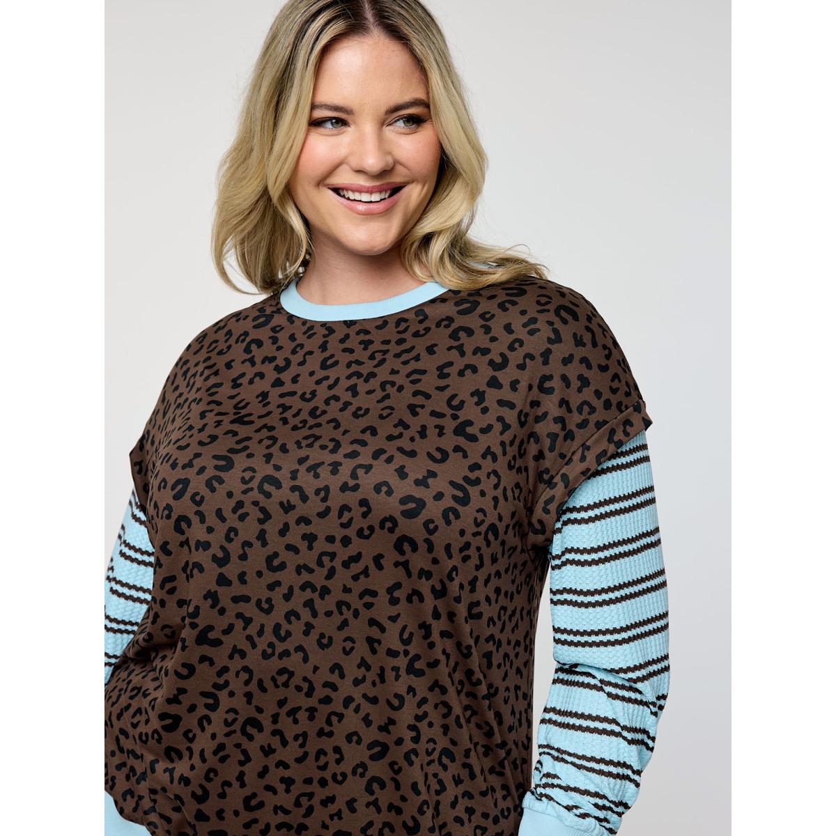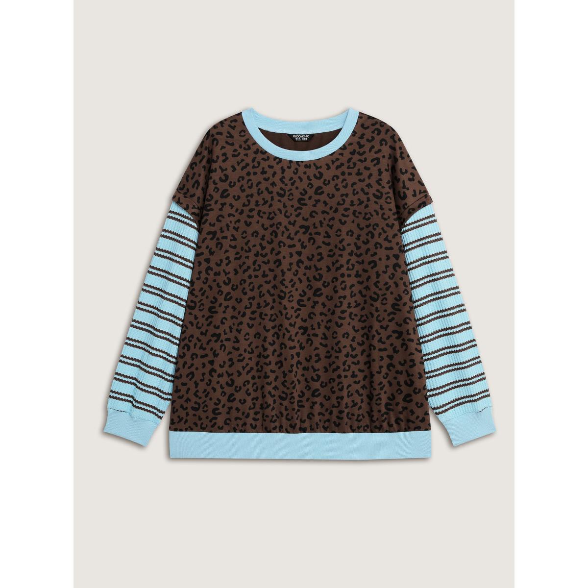 Plus Size Leopard Stripe Print Textured Sweatshirt Women Multicolor Leisure Texture Round Neck Casual Sweatshirts BloomChic 22-24/3X