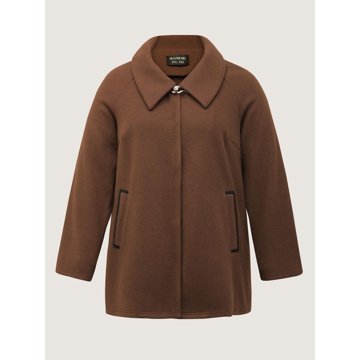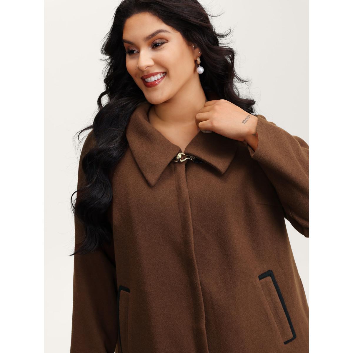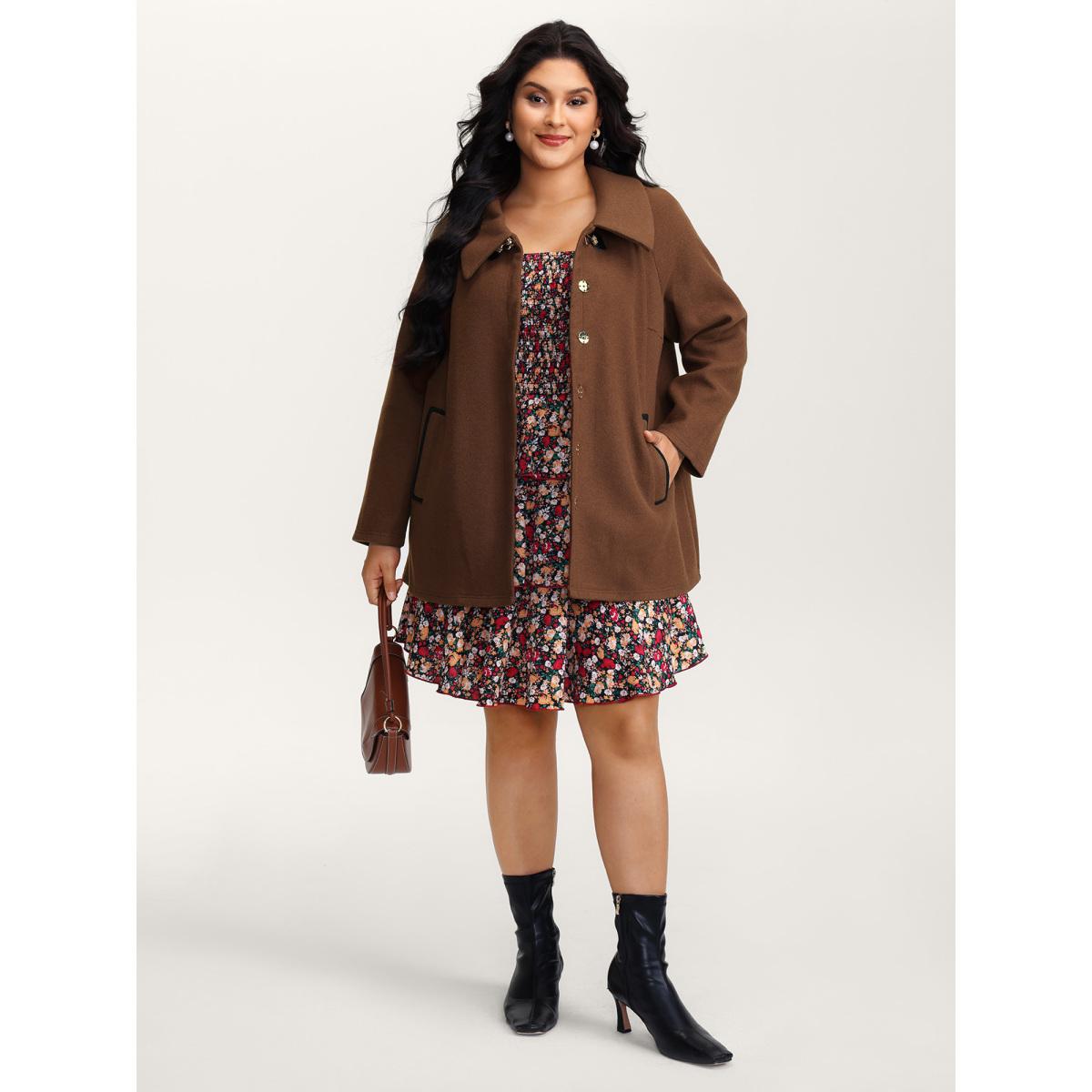 Plus Size Metal Detail Pockets Jacket Women Yellowishbrown Button Slanted pocket Casual Jackets BloomChic 28/5X