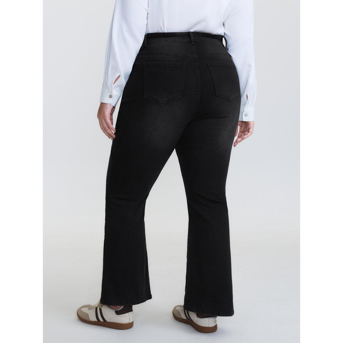 Plus Size Mid-Rise Everyday Bootcut Jeans Women Denimblack Leisure High stretch Slanted pocket Jeans BloomChic 28/5X