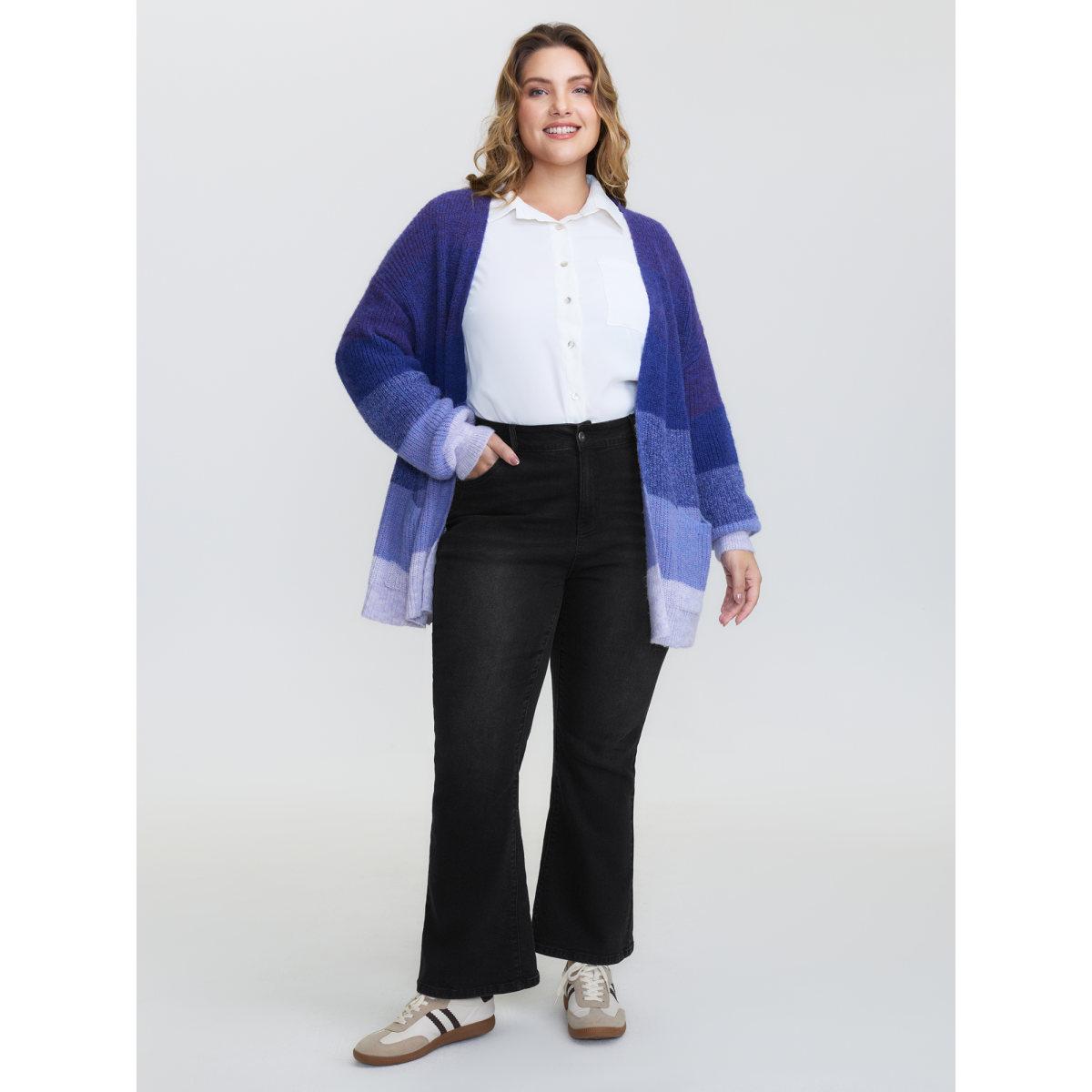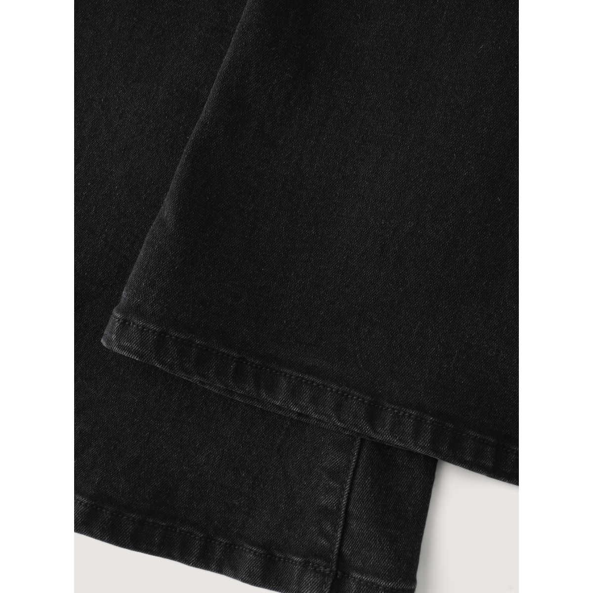 Plus Size Bootcut Very Stretchy High Rise Dark Wash Fringe Detail Jeans Women Black Casual Plain High stretch Slanted pocket Jeans BloomChic 10/M