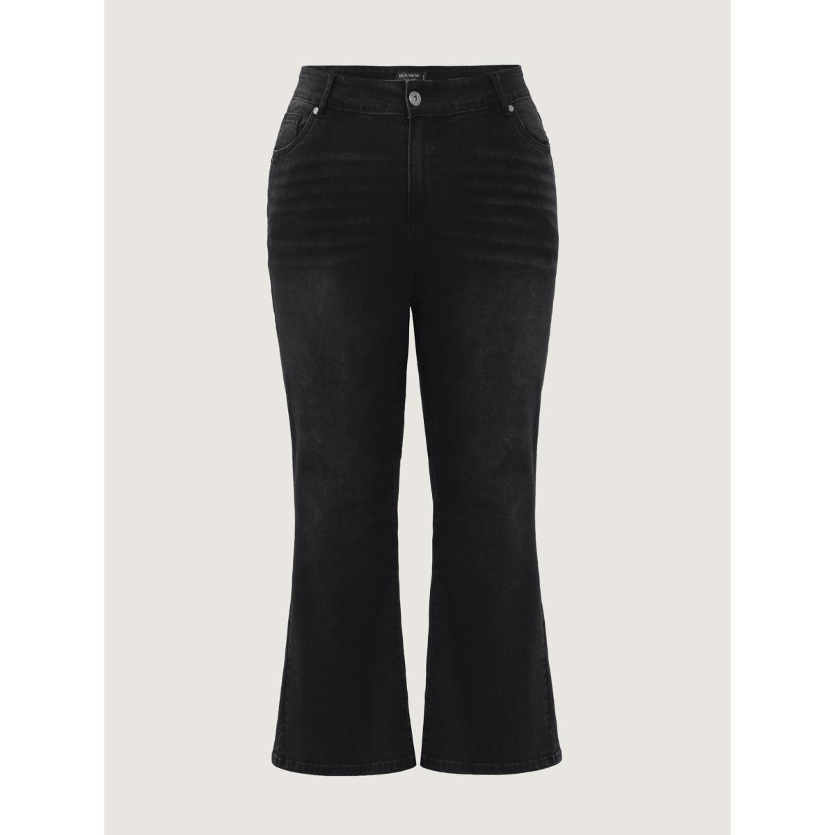 Plus Size Bootcut Slightly Stretchy High Rise Black Wash Cropped Jeans Women Black Casual Plain Pocket Low stretch Pocket Jeans BloomChic 16/1X