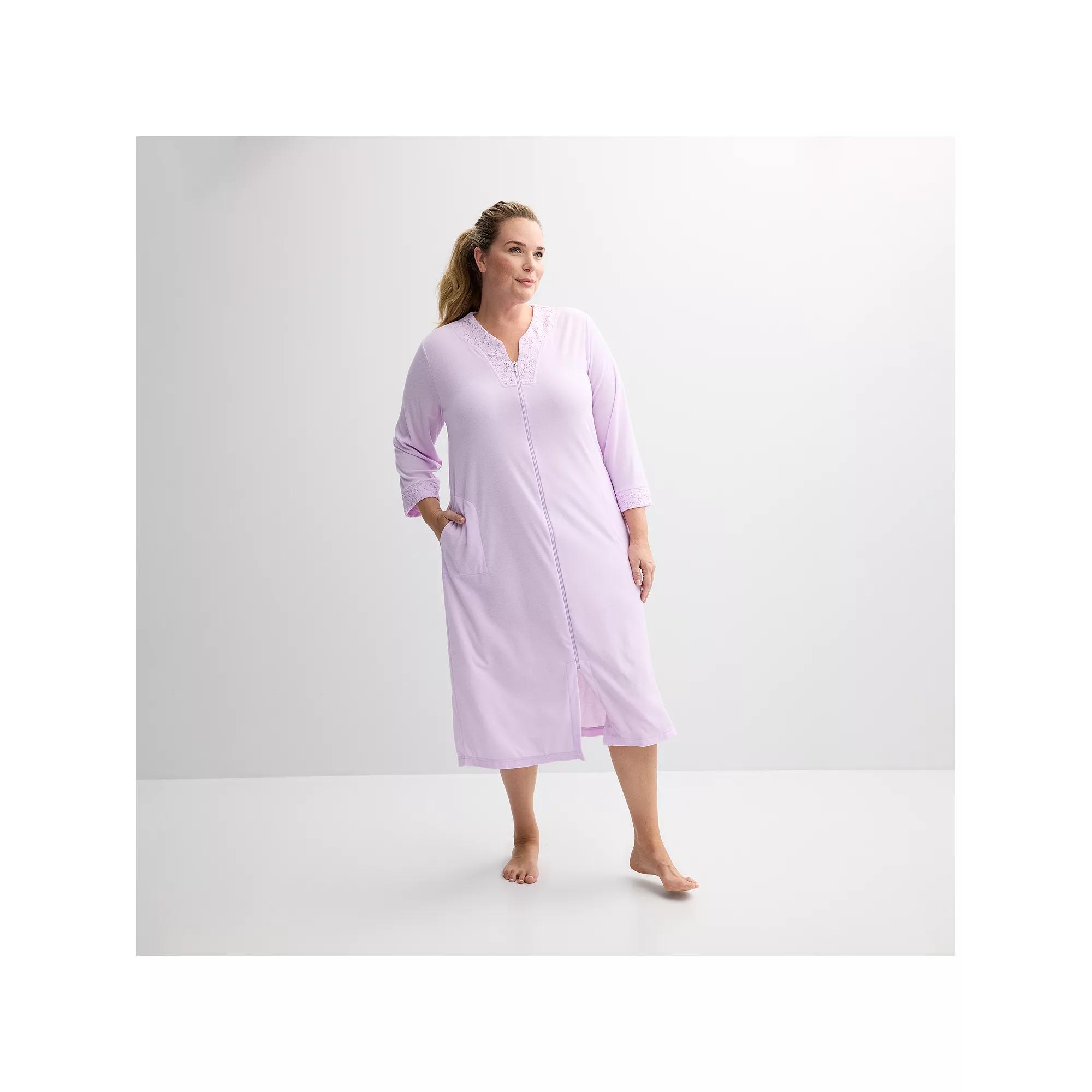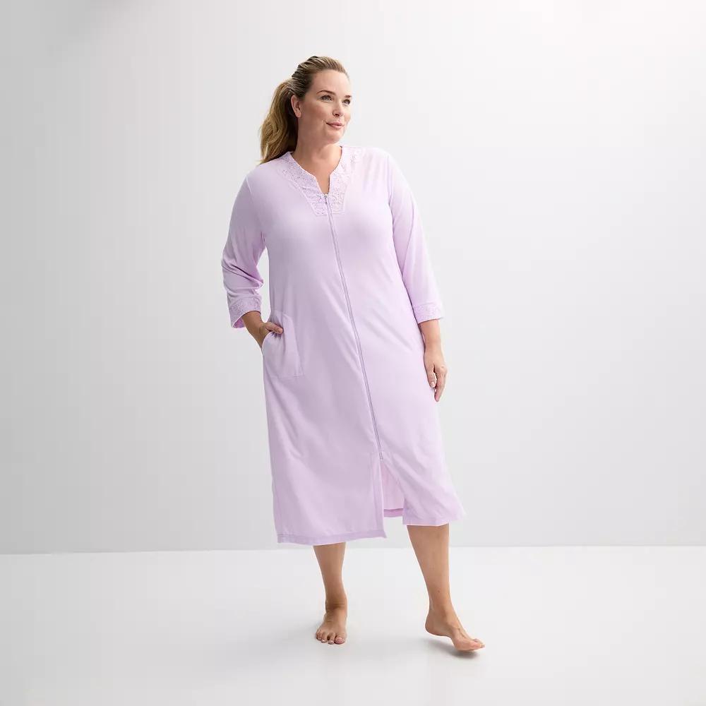 You'll love the cozy style of this women's plus size Miss Elaine Essentials terry long zip robe. Click on this INTIMATES & SLEEPWEAR GUIDE to find the perfect fit and more!You'll love the cozy style of this women's plus size Miss Elaine Essentials terry long zip robe. Click on this INTIMATES & SLEEPWEAR GUIDE to find the perfect fit and more!FEATURES 3/4-length sleeves Zipper front 2 side pockets Soft knitFIT & SIZING 49-in. length from shoulder to hem Loose fitFABRIC & CARE Polyester Machine wash delicate and tumble dry low Imported Size: 2X. Color: Lavender. Gender: female. Age Group: adult.