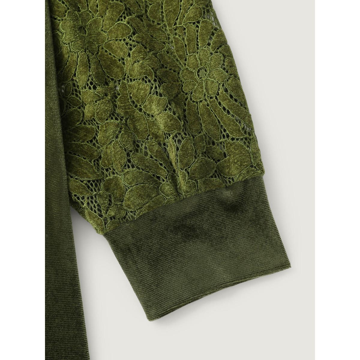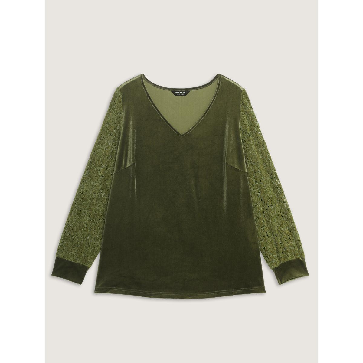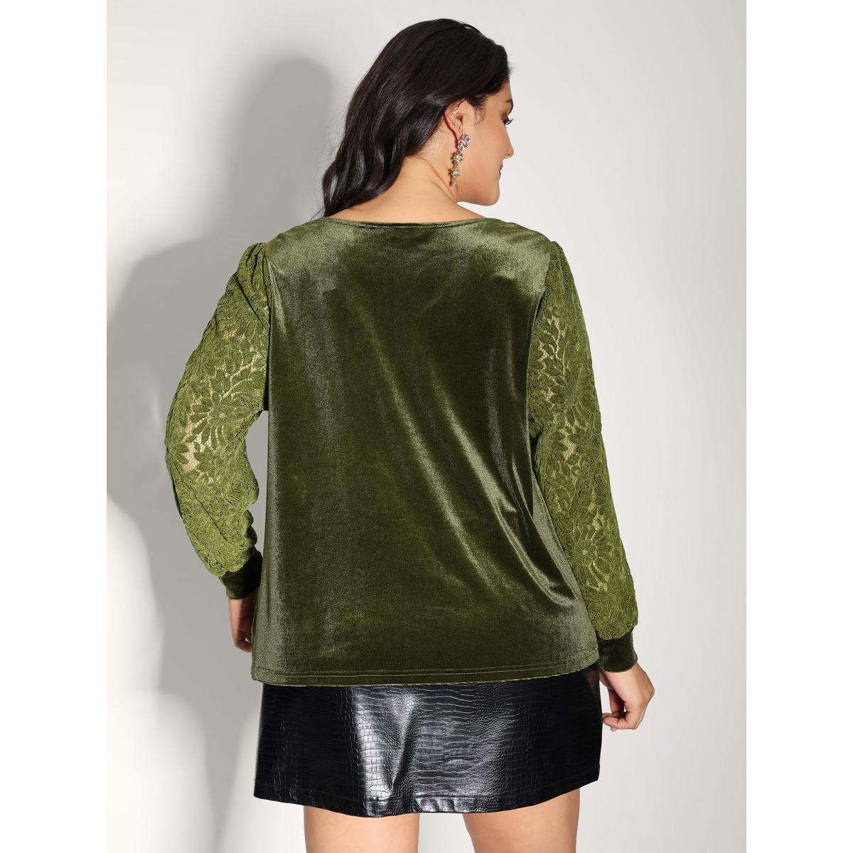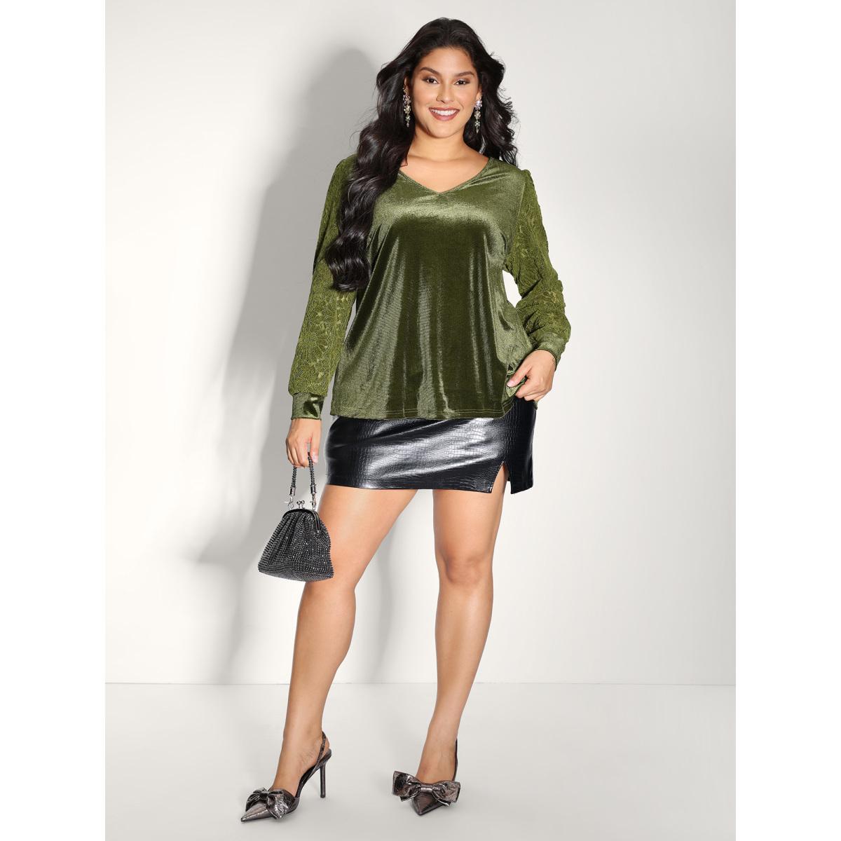Plus Size Moss Velvet Stretchy Spliced V-Neck Blouse Women Party&Cocktail Extra Long Sleeve V-neck Party Blouses BloomChic 28/5X