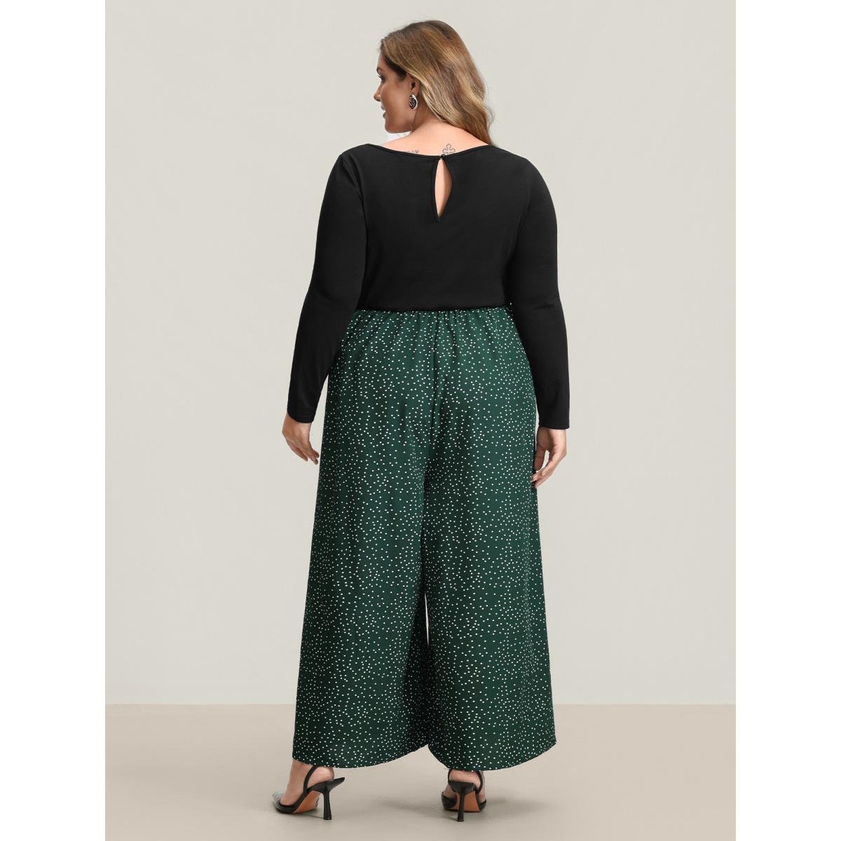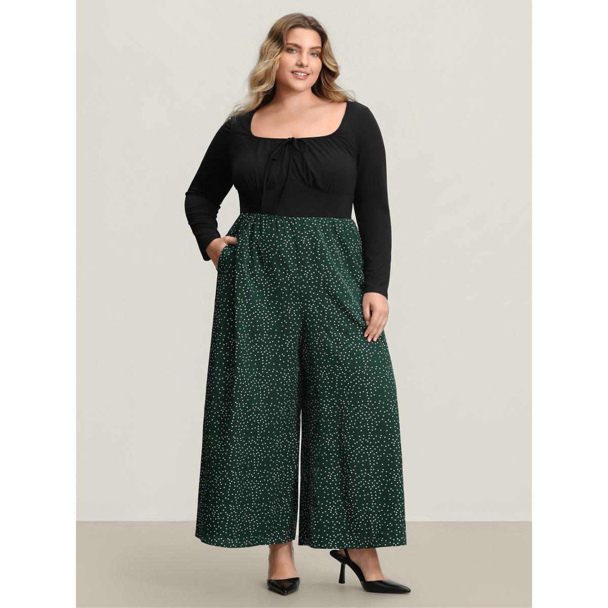Plus Size Multicolor Bust-Ease Neck-Tie Floral Pockets Jumpsuit Women Office Long Sleeve U-neck Office Loose Jumpsuits BloomChic 22-24/3X