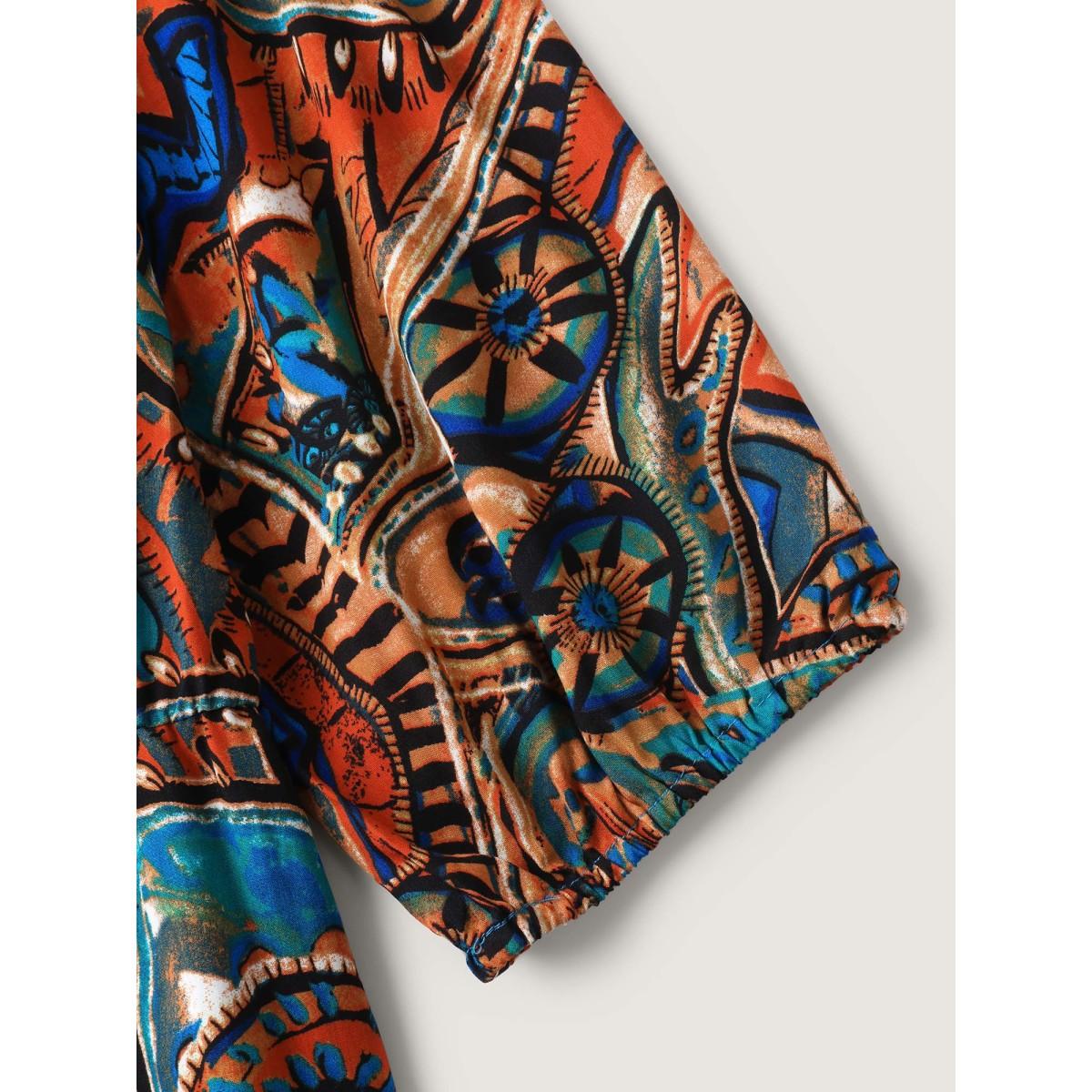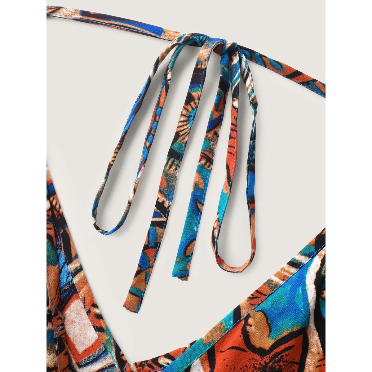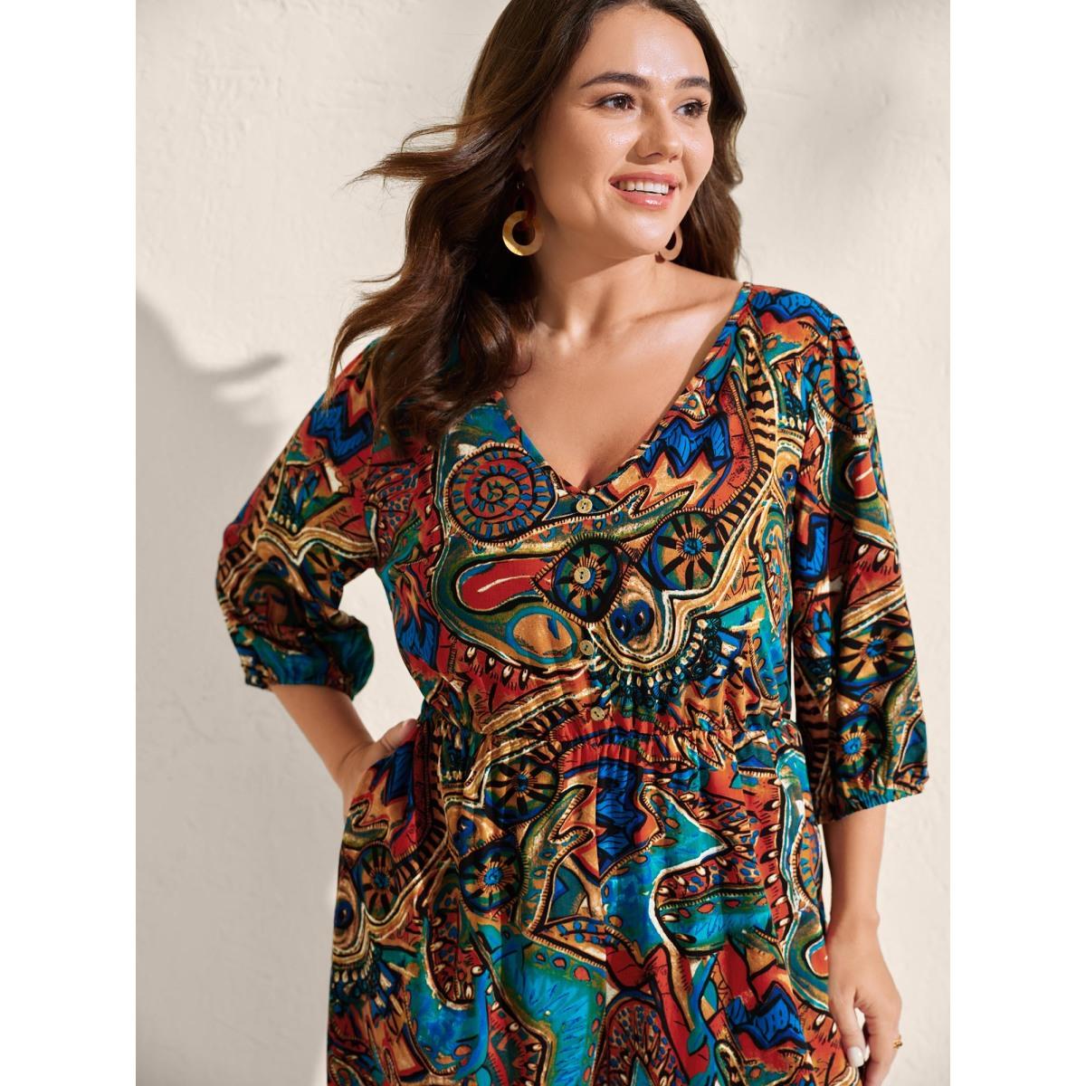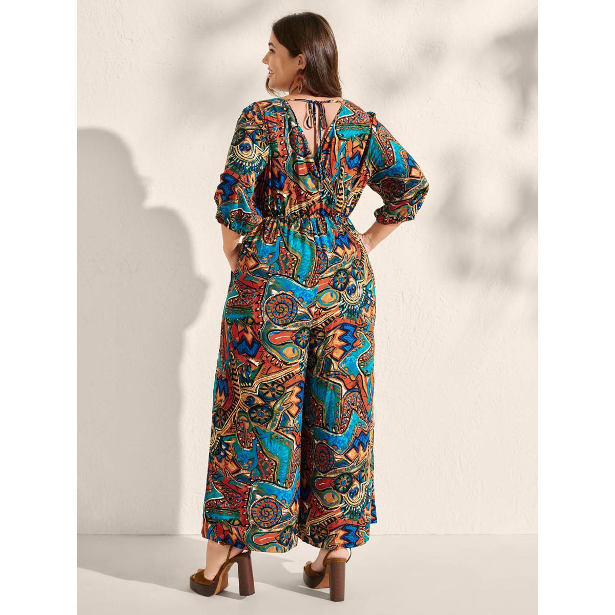 Plus Size Multicolor Graffiti Print Pockets Backless Tie Jumpsuit Women Boho Elbow-length sleeve V-neck Vacation Loose Jumpsuits BloomChic 28/5X