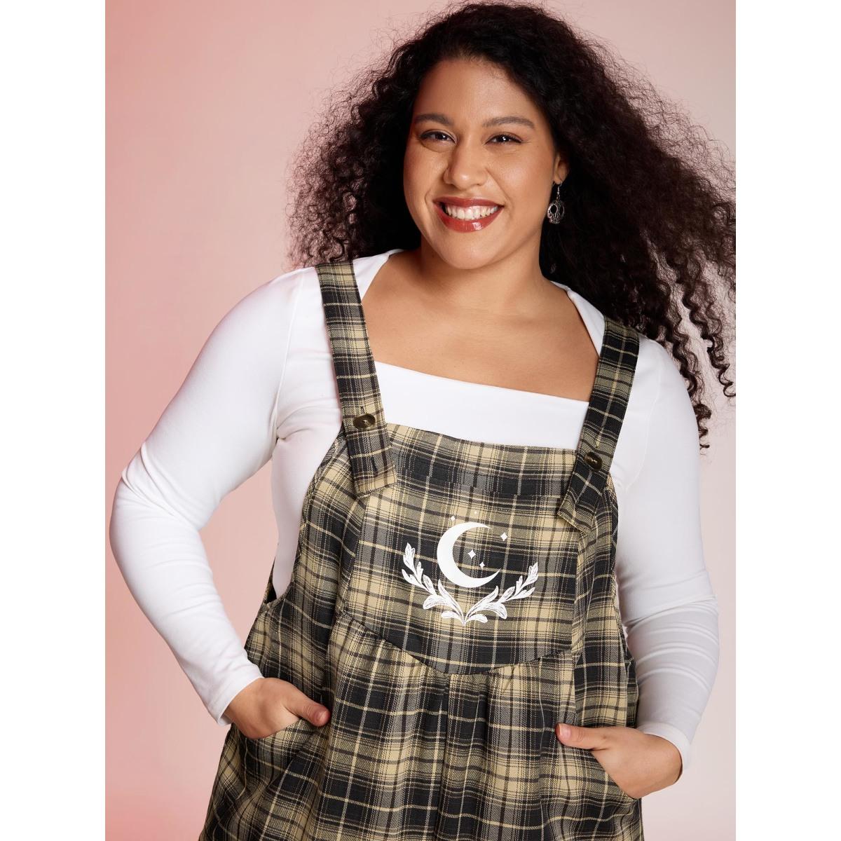 Plus Size Multicolor Plaid Print Moon Motif Pockets Jumpsuit Women Leisure Sleeveless Non Casual Loose Jumpsuits BloomChic 18-20/2X