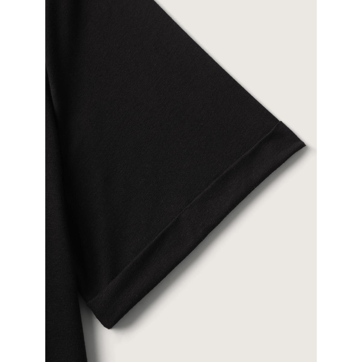 Plus Size Neck Cut-Out Plain T-Shirt Black Women Leisure Asymmetrical V-neck Casual T-shirts BloomChic 18-20/2X