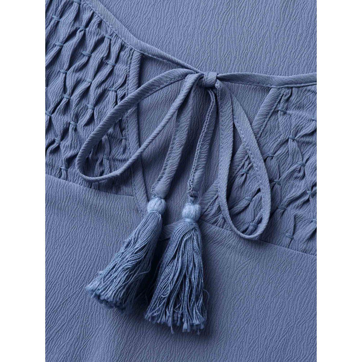 Plus Size Neck-Tie Tassel Pockets Tiered Midi Dress Mediumblue Women Notched collar Half Sleeve Curvy BloomChic 18-20/2X Product Image