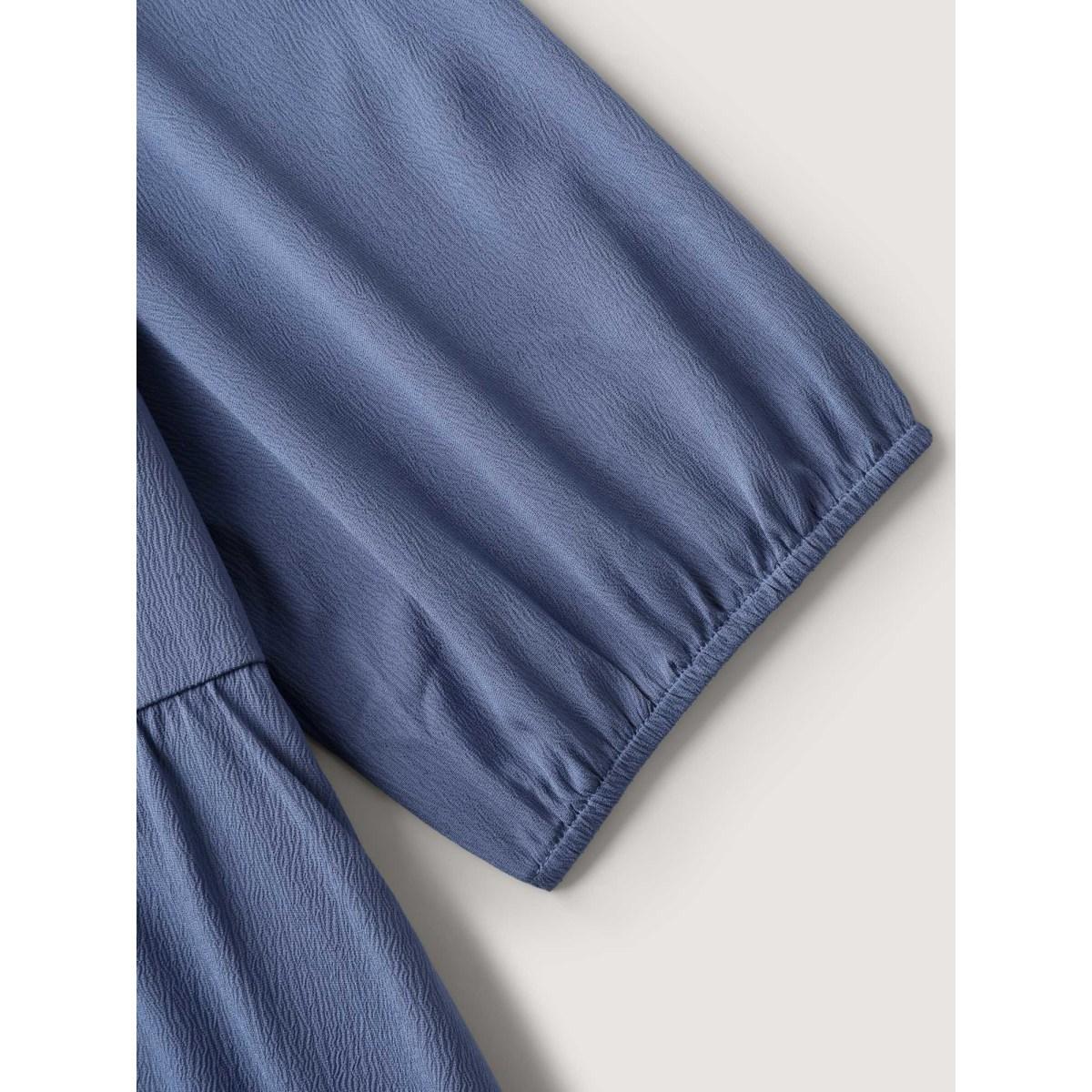 Plus Size Cotton Textured Neck-Tie Pockets Midi Dress LightBlue Women Round Neck Short sleeve Curvy BloomChic 28/5X