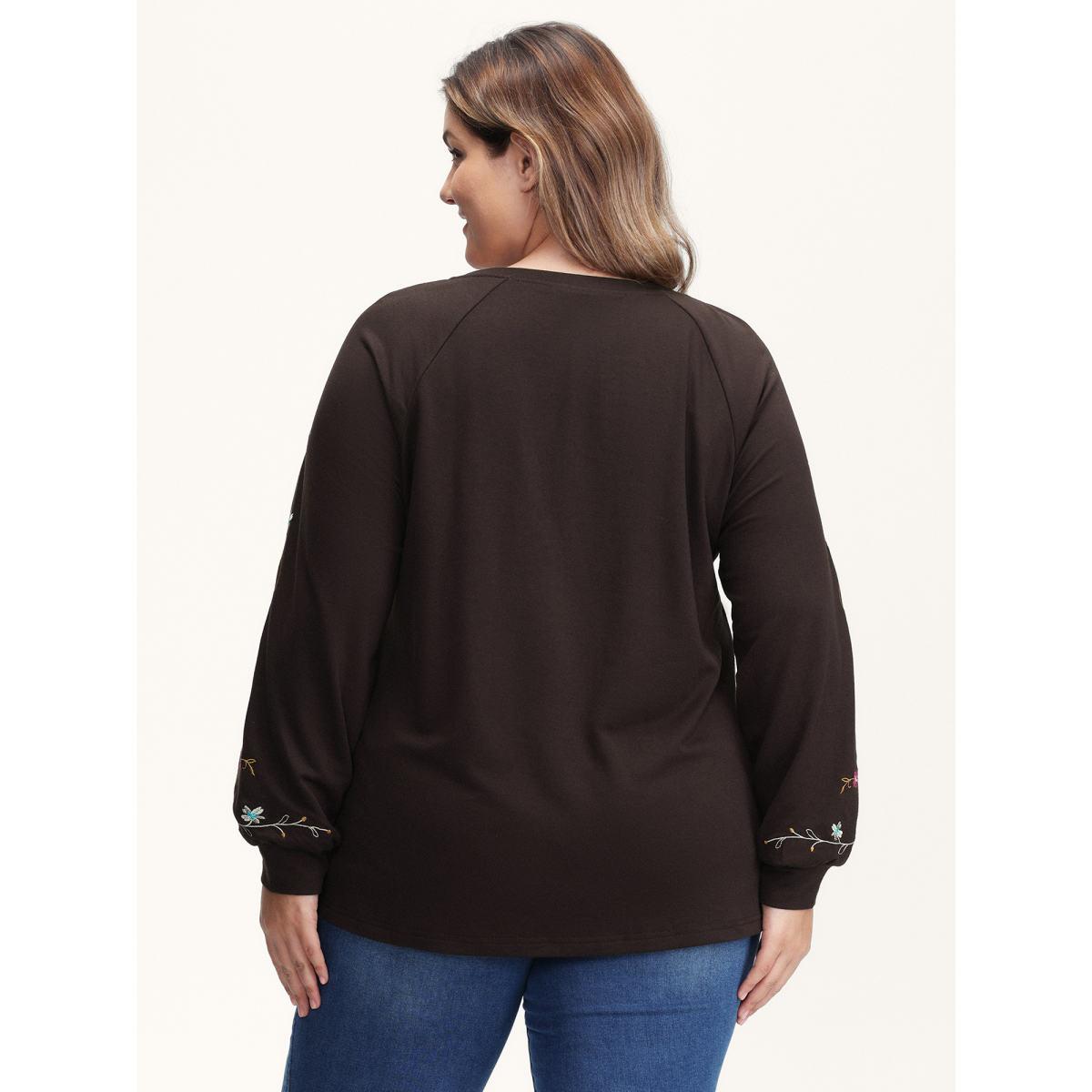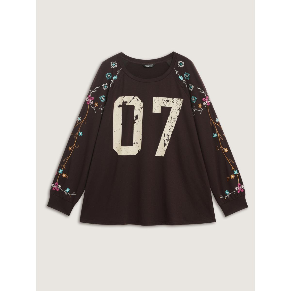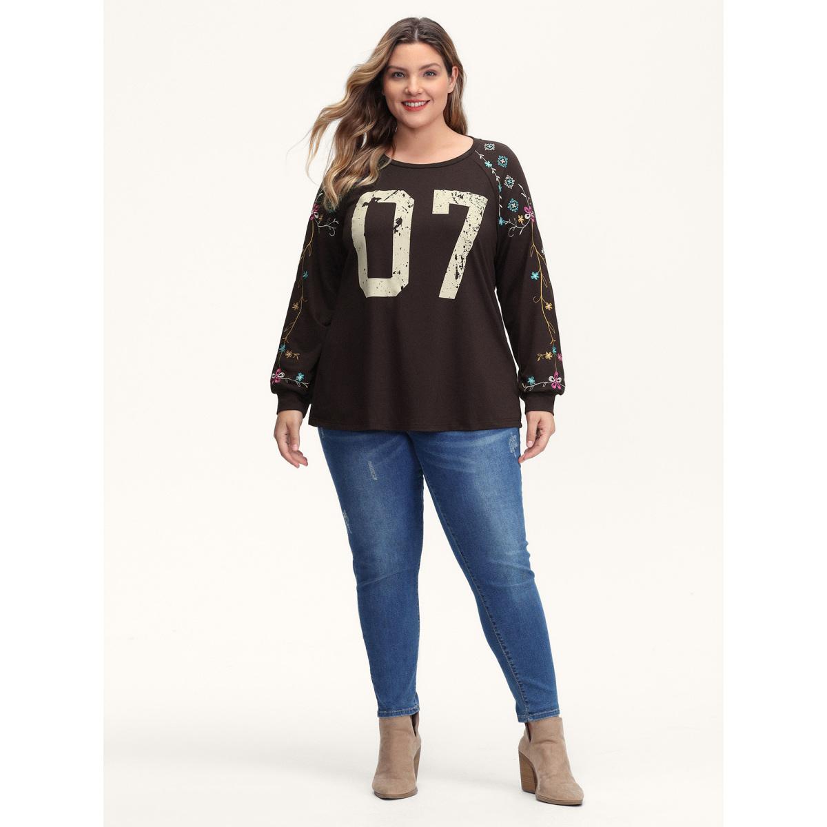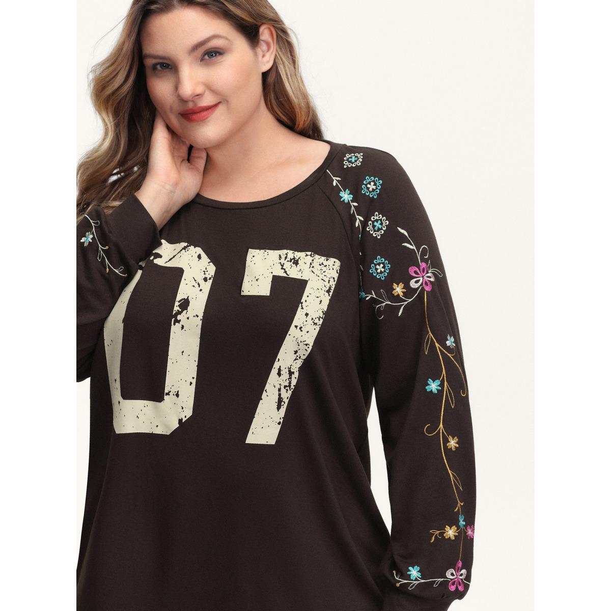 Plus Size Number 07 Embroidered Relaxed-Fit Sweatshirt Women Browncoffeecolor Leisure Round Neck Casual Sweatshirts BloomChic 28/5X