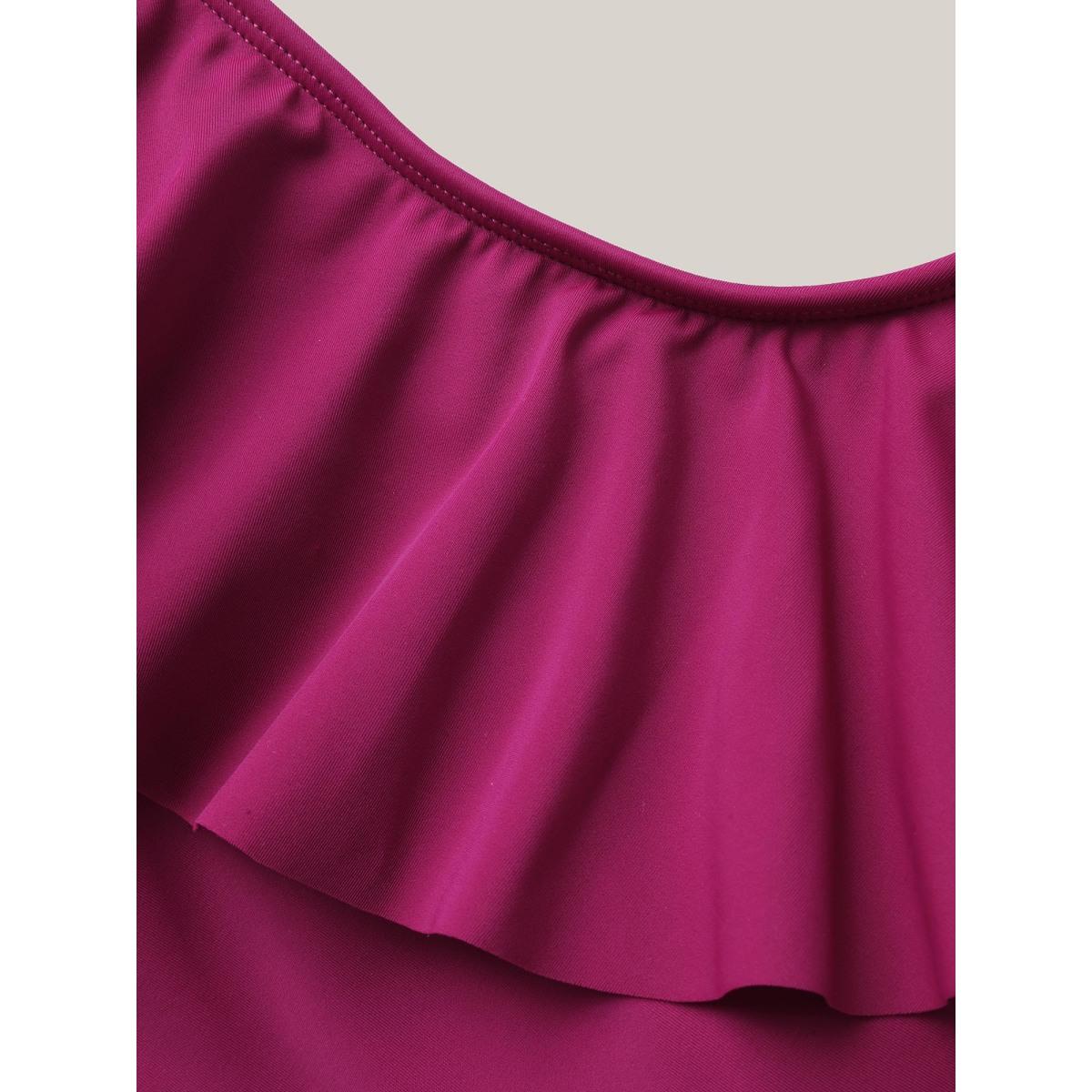 Plus Size One-Shoulder Drawstring Swim Top Women's Swimwear RedViolet Resort Drawstring High stretch Skinny Asymmetrical Neck Curve Swim Tops BloomChic 22-24/3X