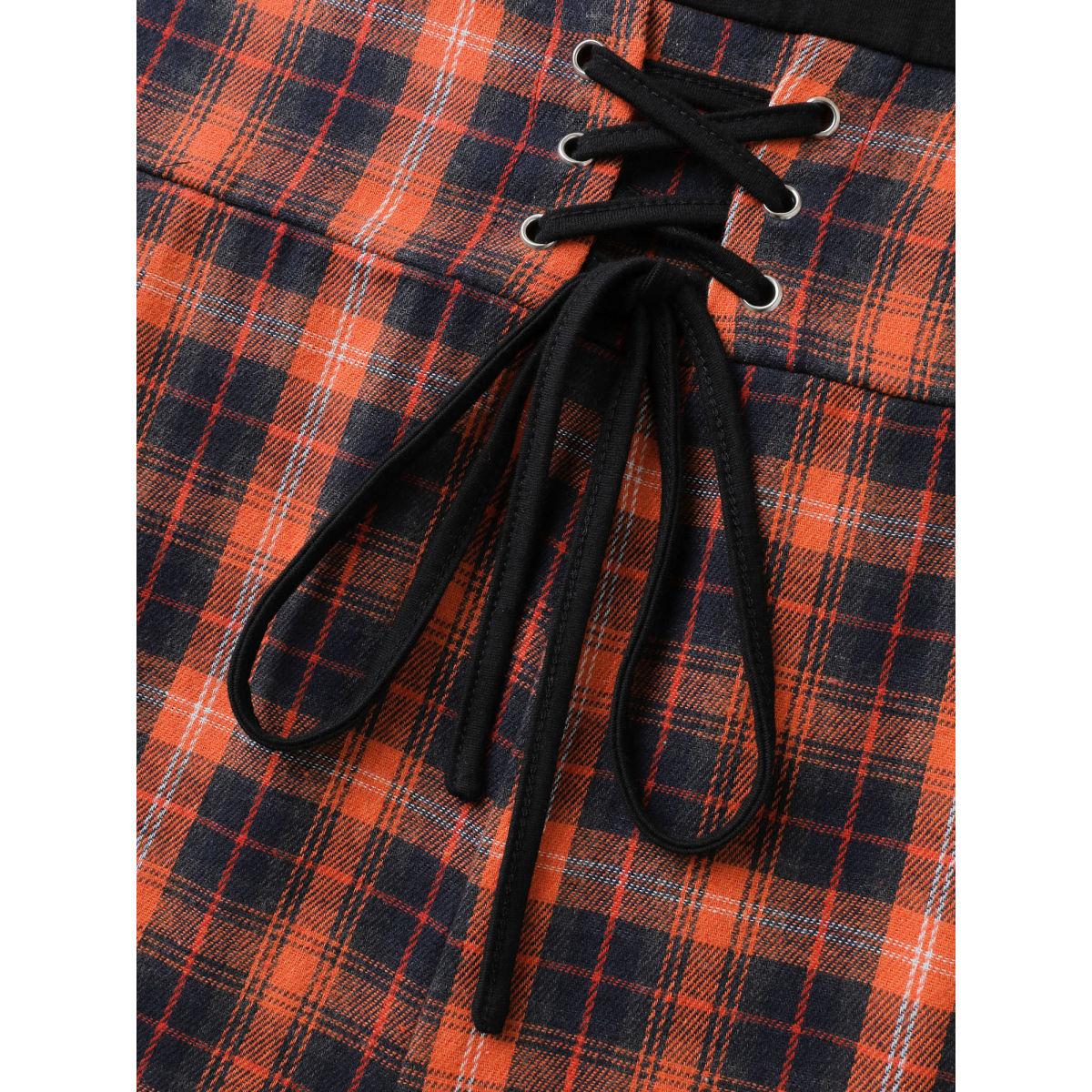 Plus Size OrangeRed Checkered Print Pockets Cross-Tie Jumpsuit Women Timeless Half Sleeve V-neck Elegant Loose Jumpsuits BloomChic 26/4X