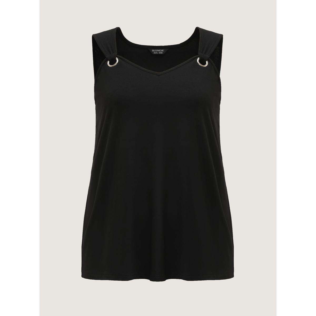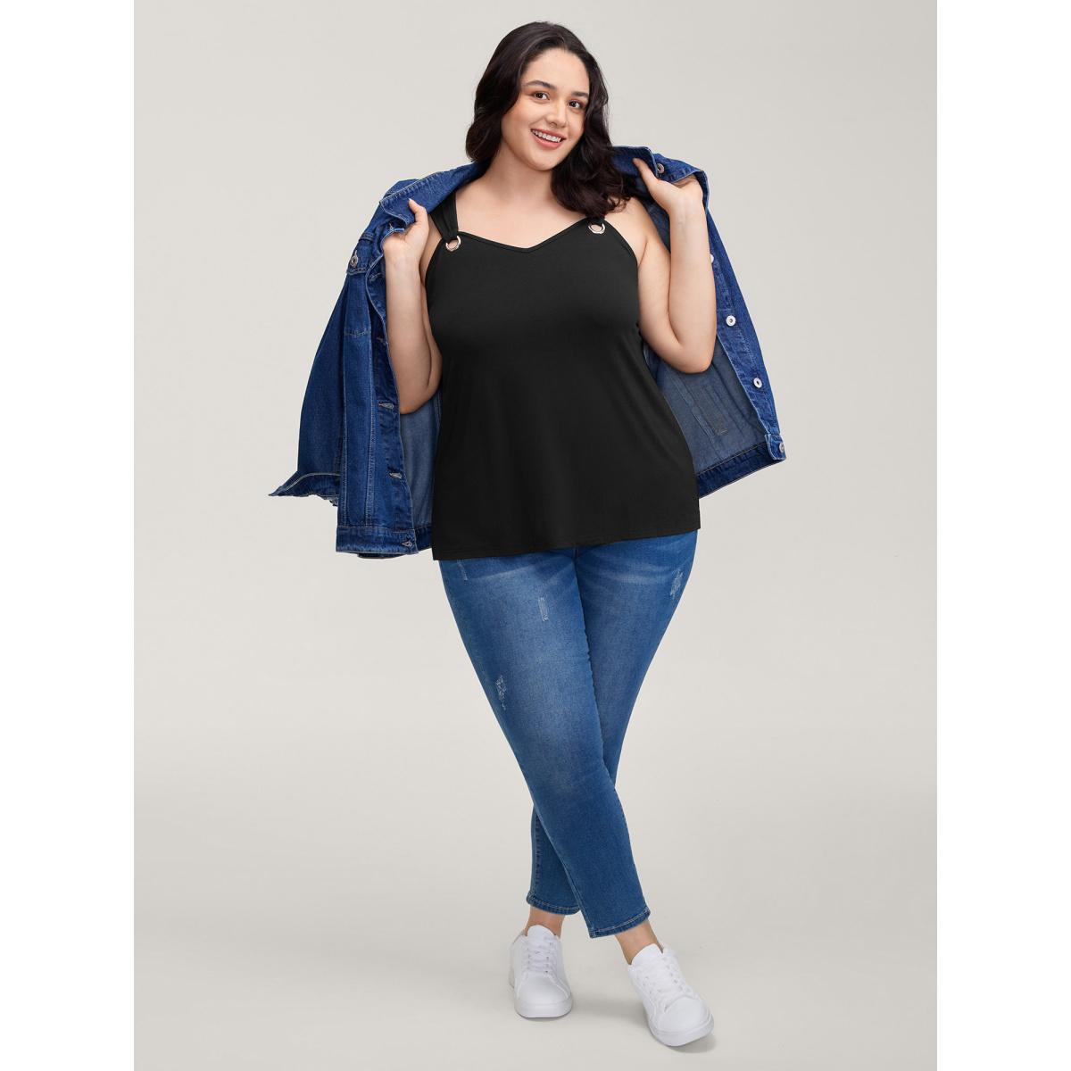 Plus Size Overall Straps Drapey Solid Tank Top Women Black Leisure Eyelet Non Casual Tank Tops Camis BloomChic 30/6X