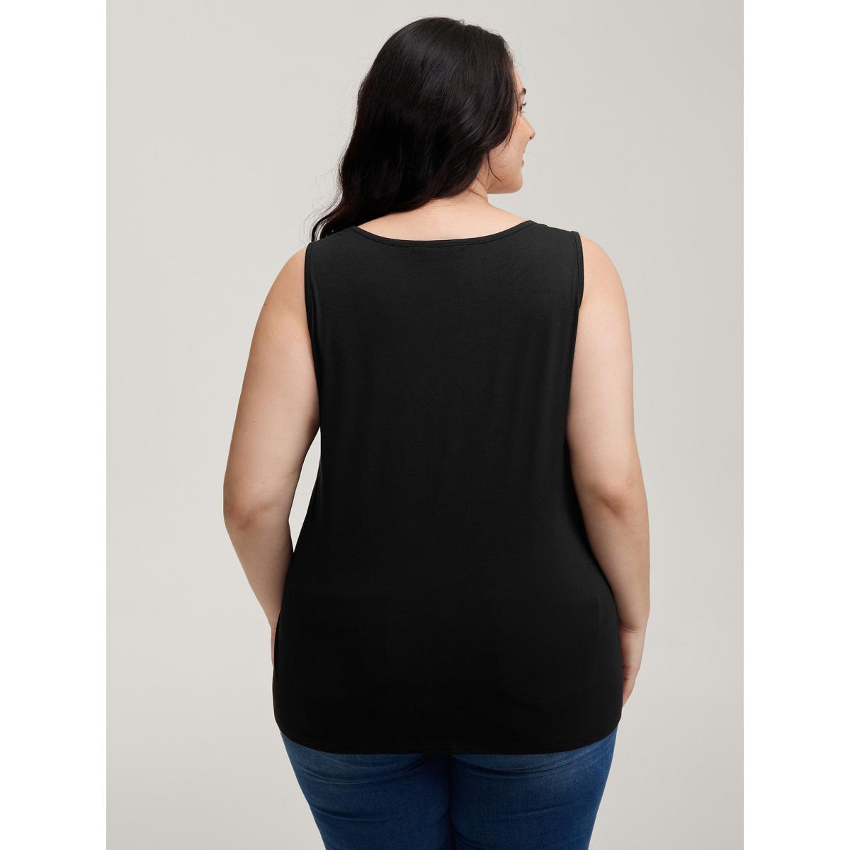 Plus Size Supersoft Essentials Solid Keyhole Tank Top Women Black Casual Non Round Neck Everyday Tank Tops Camis BloomChic 22-24/3X